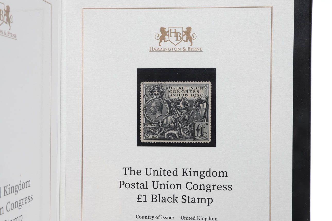A booklet by Harrington & Bryne, with a Postal Union Congress £1 used stamp from 1929. Booklet 22cms by 16cms.