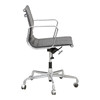 Office chair with polished aluminum frame, swivel stem and five foot with wheels, upholstered in black leather. Tiltable and height-adjustable seat/back. Manufactured at Vitra, model EA117. Designed 1958 as part of the Aluminium Group series. H. 82-95, B. 58, D. 55 cm.