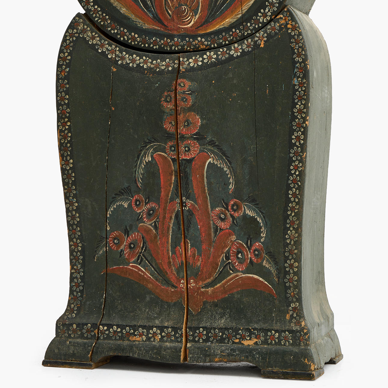 4939169. A 1730s floor clock by Anders Polhammar, Stjärnsund, Dalarna. Signed clockwork. Case with original painting.
