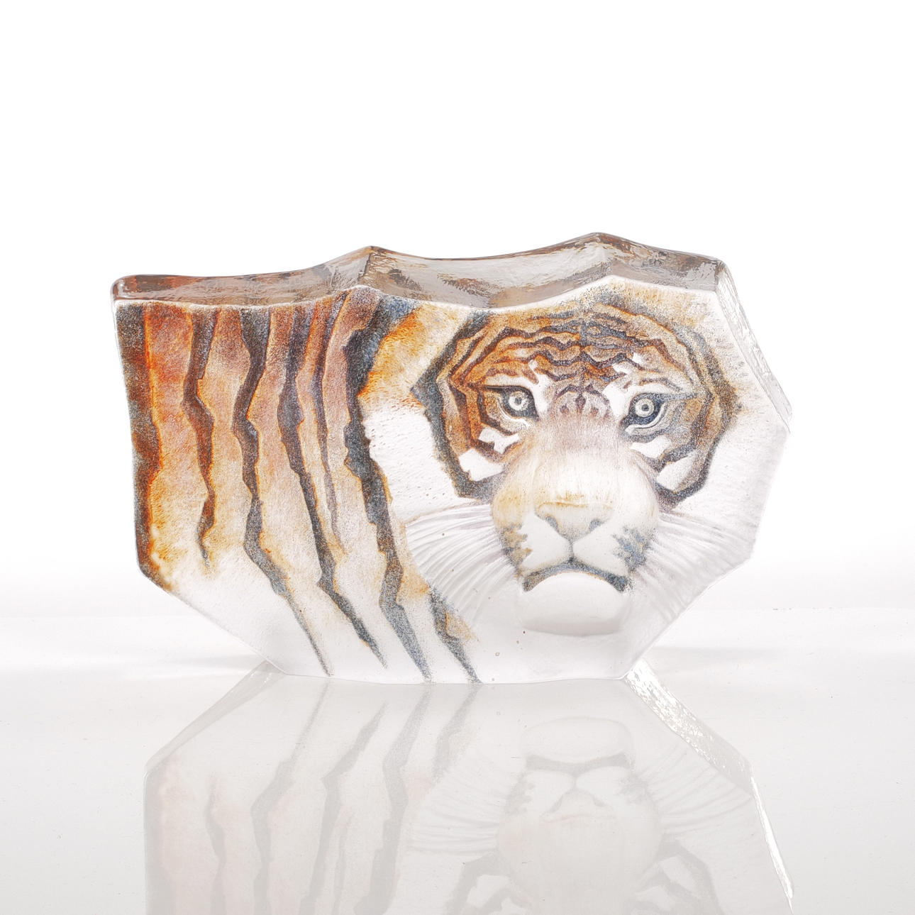 4939272. MATS JONASSON. Glass block with Tiger, Painted lock, signed.