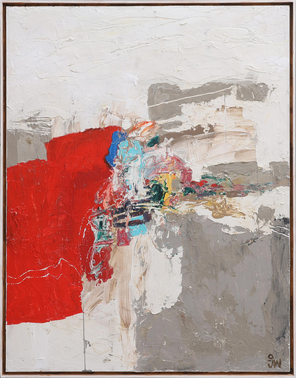 Mixed media on panel, monogram signed, approx. 122x95 cm, frame dimensions approx. 127x100 cm.