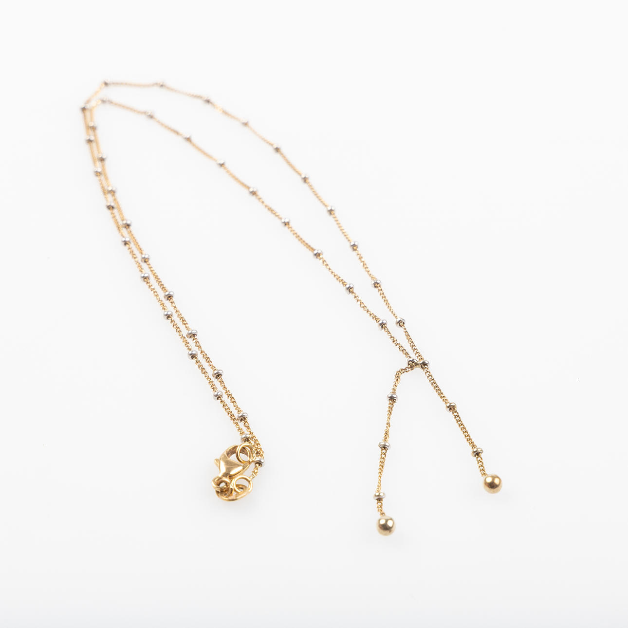Thin anchor link treaded with white gold balls. L about 41 cm. Weight about 3.2 grams.