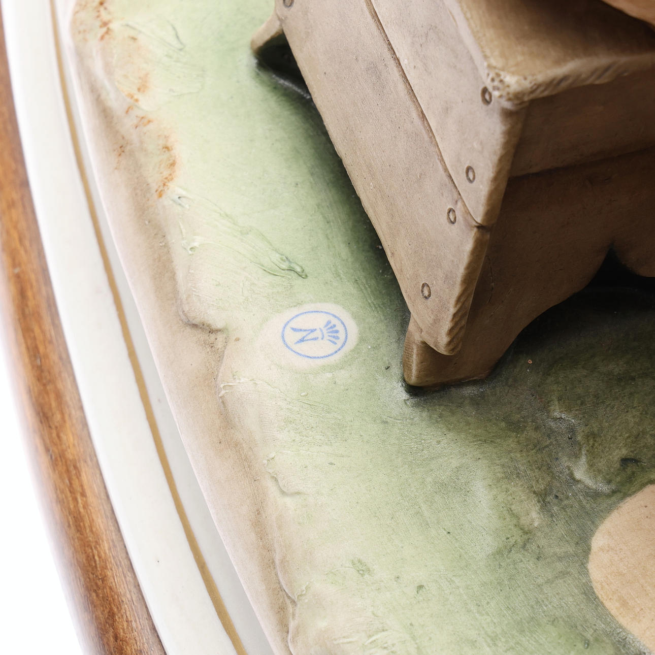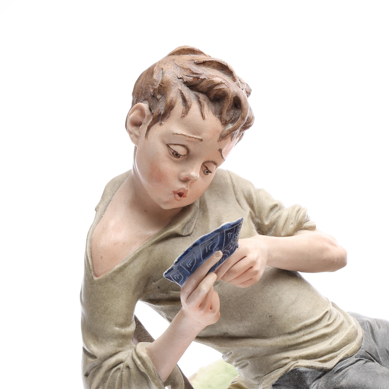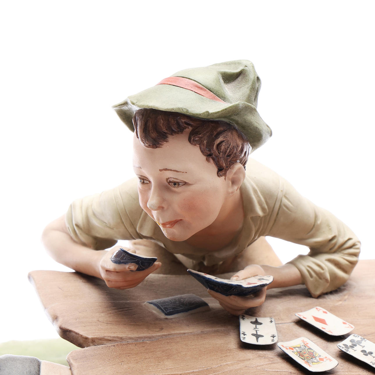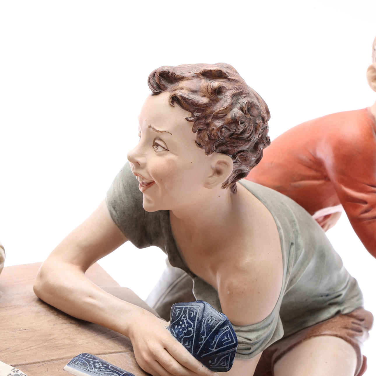 Depicting 4 boys playing cards, modelled by Bruno Merli, signed on an oval wooden base, W.56.5cm overall.
