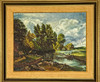 A gilt framed oil on canvas together with a gilt framed oil on board, largest 59 x 86cm.