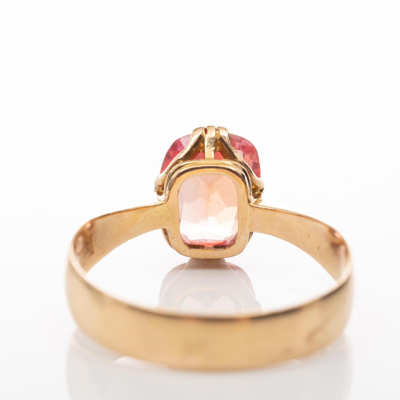 Ring in 18K gold with an oval-cut synthetic orange sapphire about 2 ct