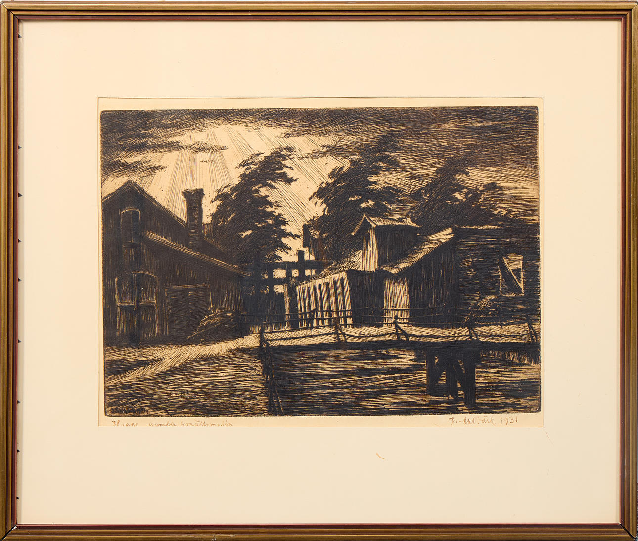 Signed and dated J. Ahlbäck 1931 in ink and in plate. Etching. P. 31.5 x 22 cm.