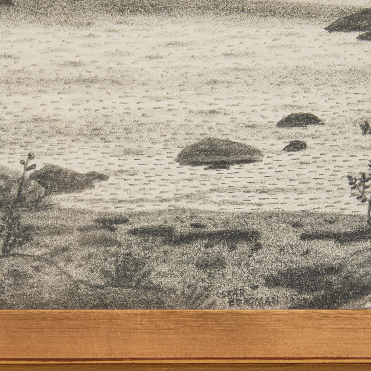 Pencil on paper, 17,2 x 26 cm, including frame 24 x 33 cm. Signed and dated Oskar Bergman 1923.