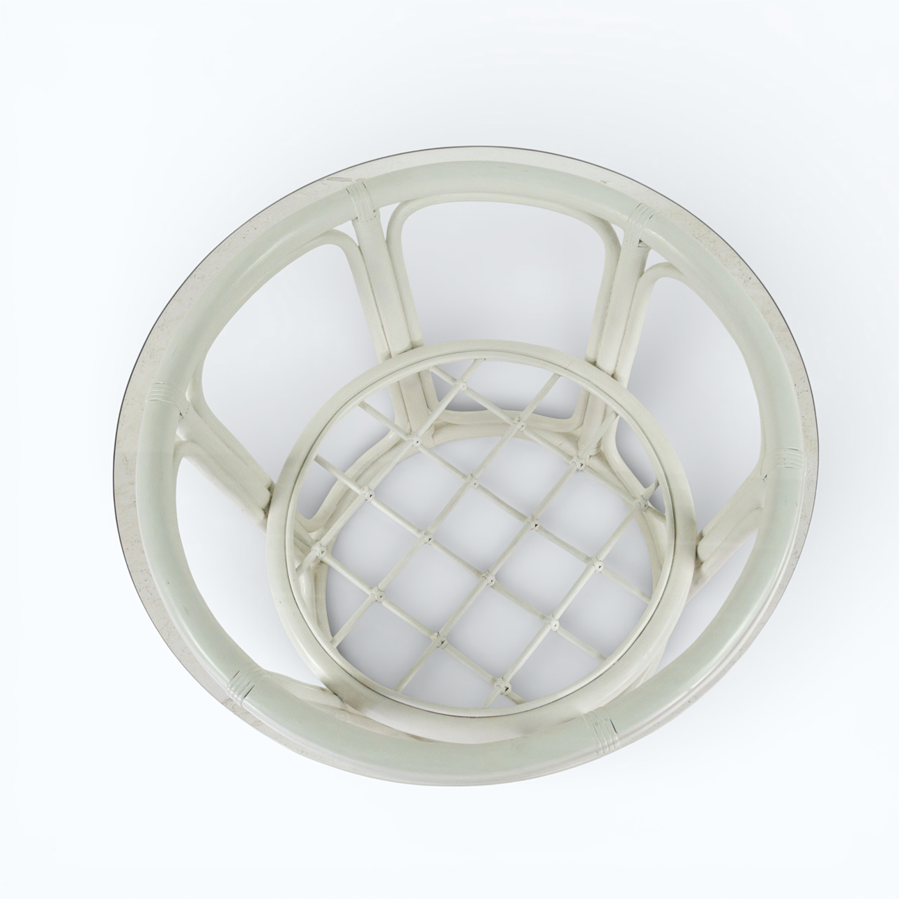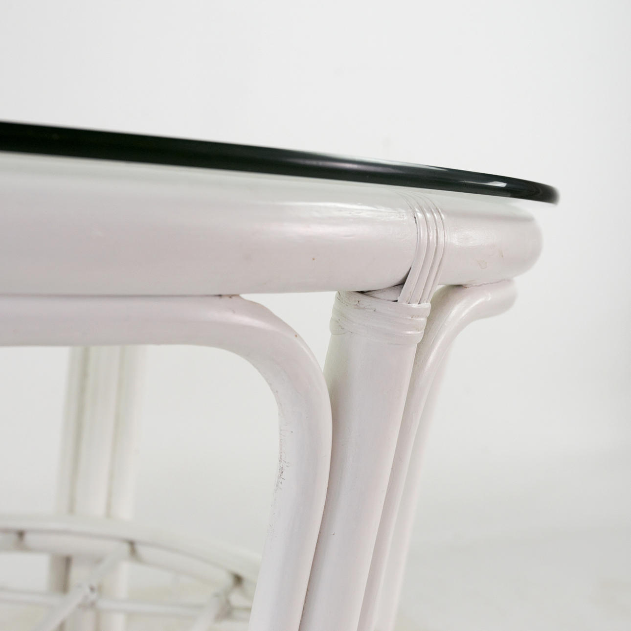4940817. RATTAN TABLE WITH GLASS TOP, CONTEMPORARY.