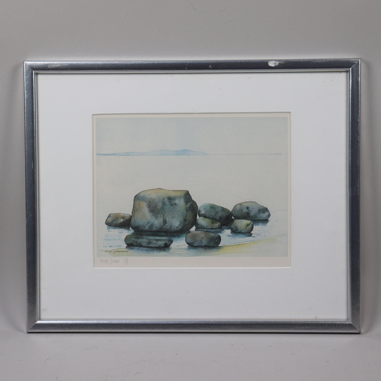 4940935. SVEN JONASSON. lithography, stones by the beach.