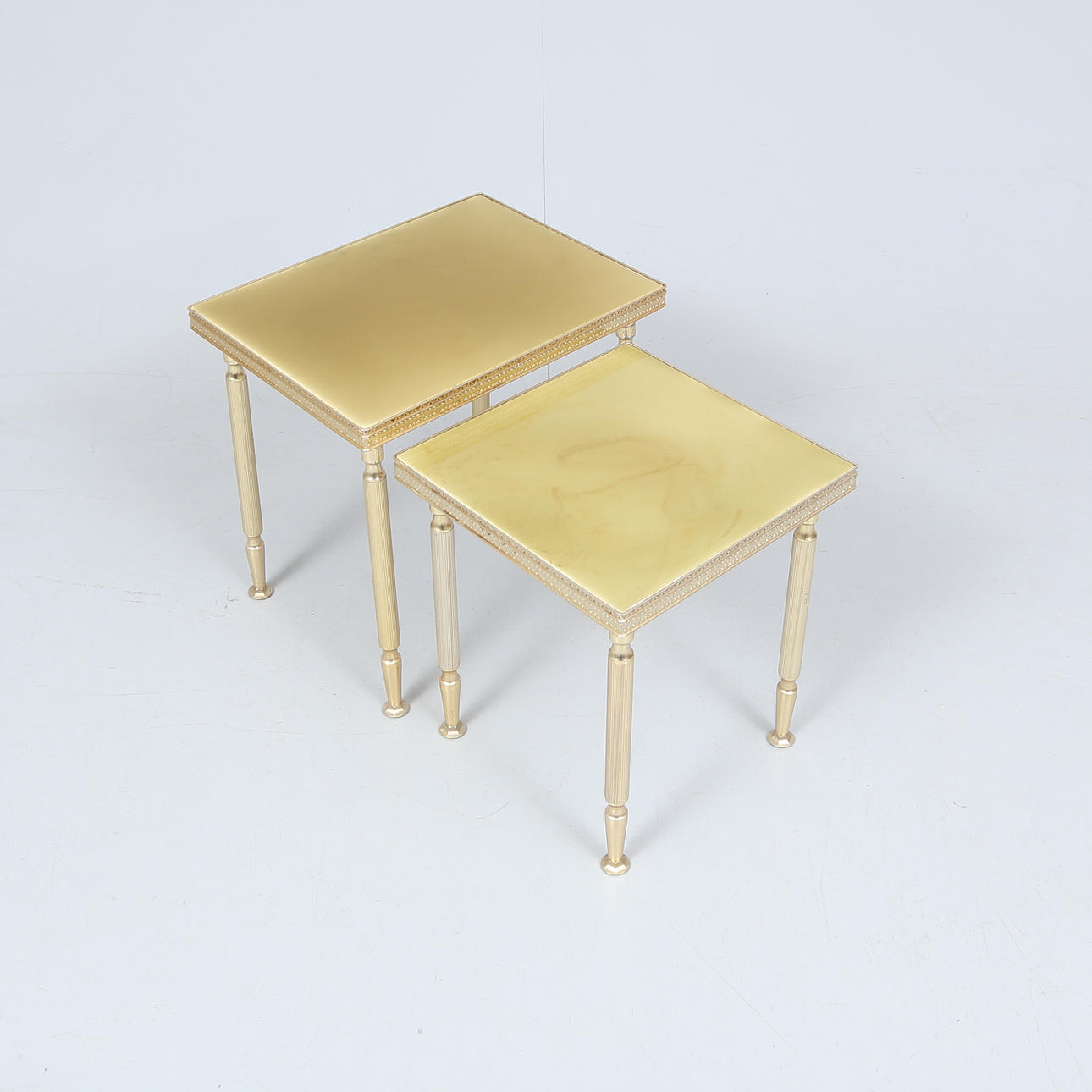 4940955. SET TABLE, 2 pieces, metal and artificial pulp.