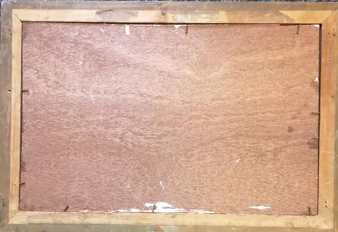 Abstract oil painting on board signed W Scott - frame 44cm x 64.5cm.