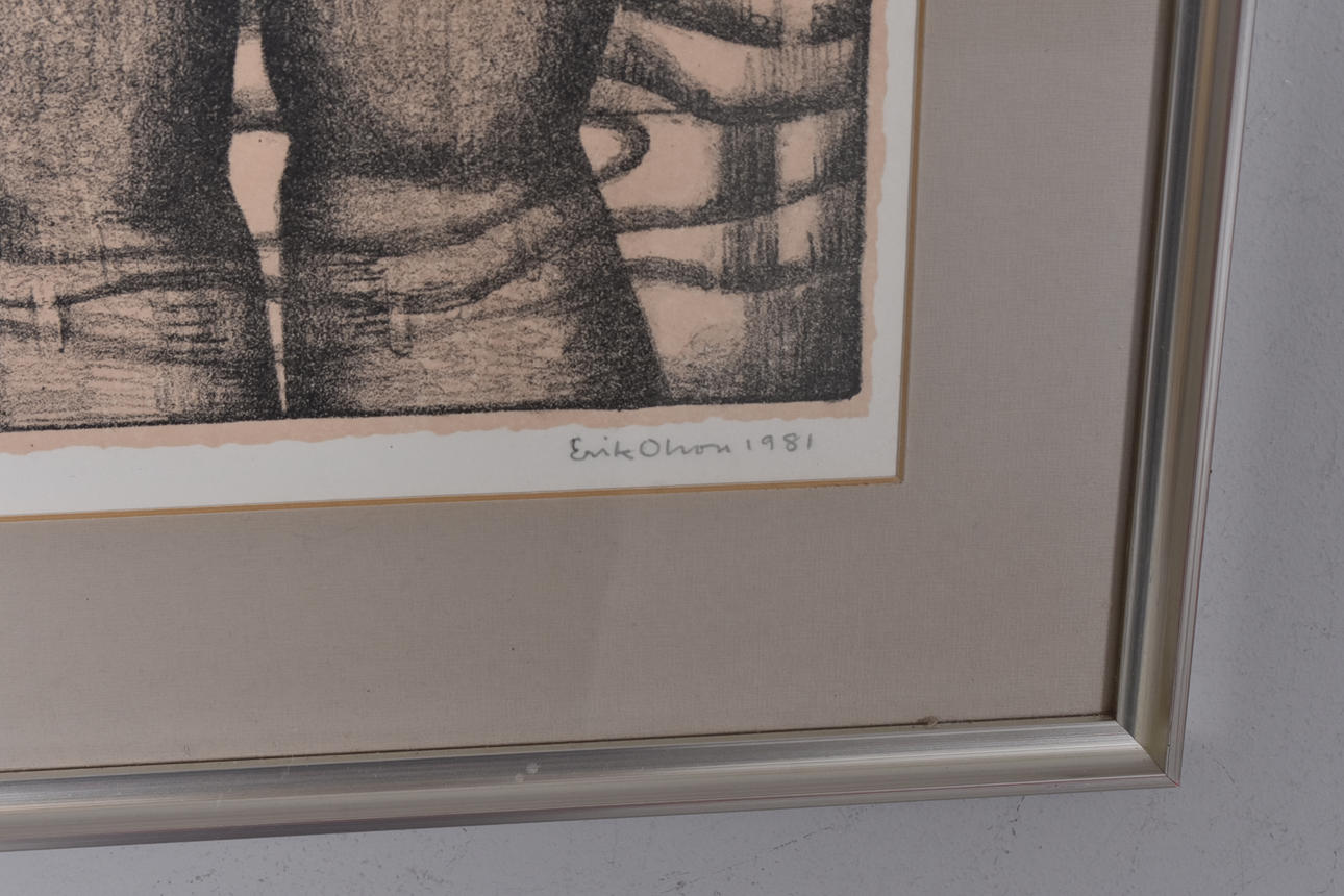 A verso exhibition label from Sveagalleriet Stockholm. 58x46 cm. Overall dimensions 78x62 cm.