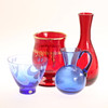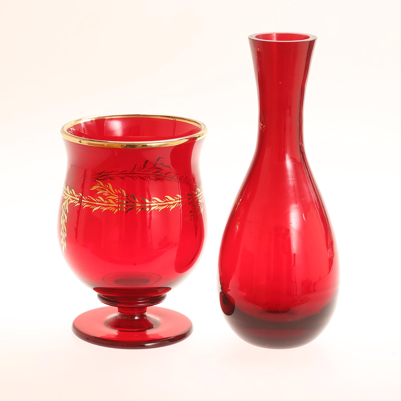 Normal wear and tear, high red vase with small notch and manufacturing defect.