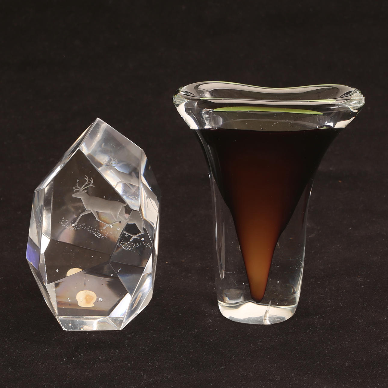Glass block with moose decor, height approx. 13 cm.