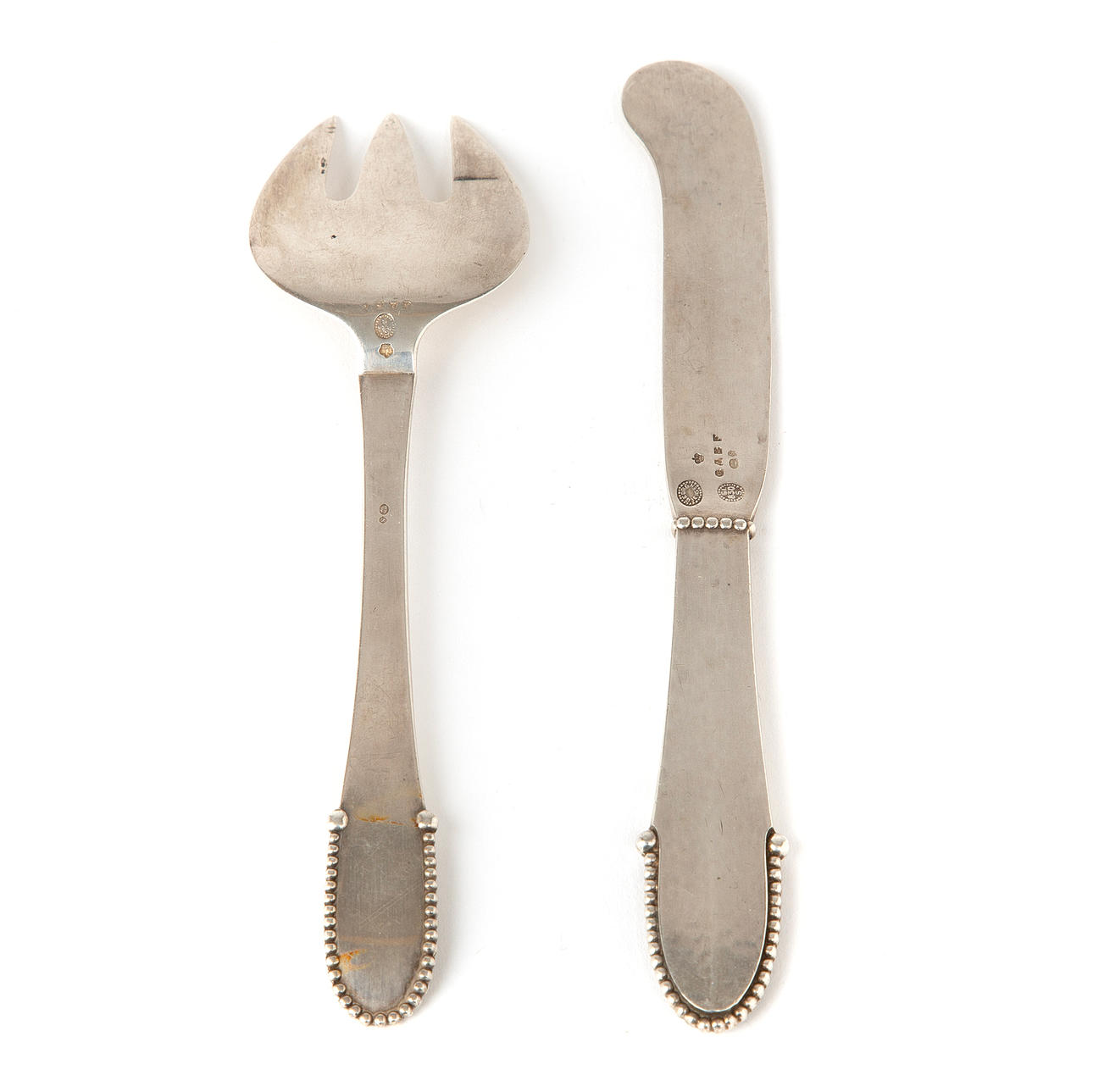 GEORG JENSEN, a silver fork and knife.