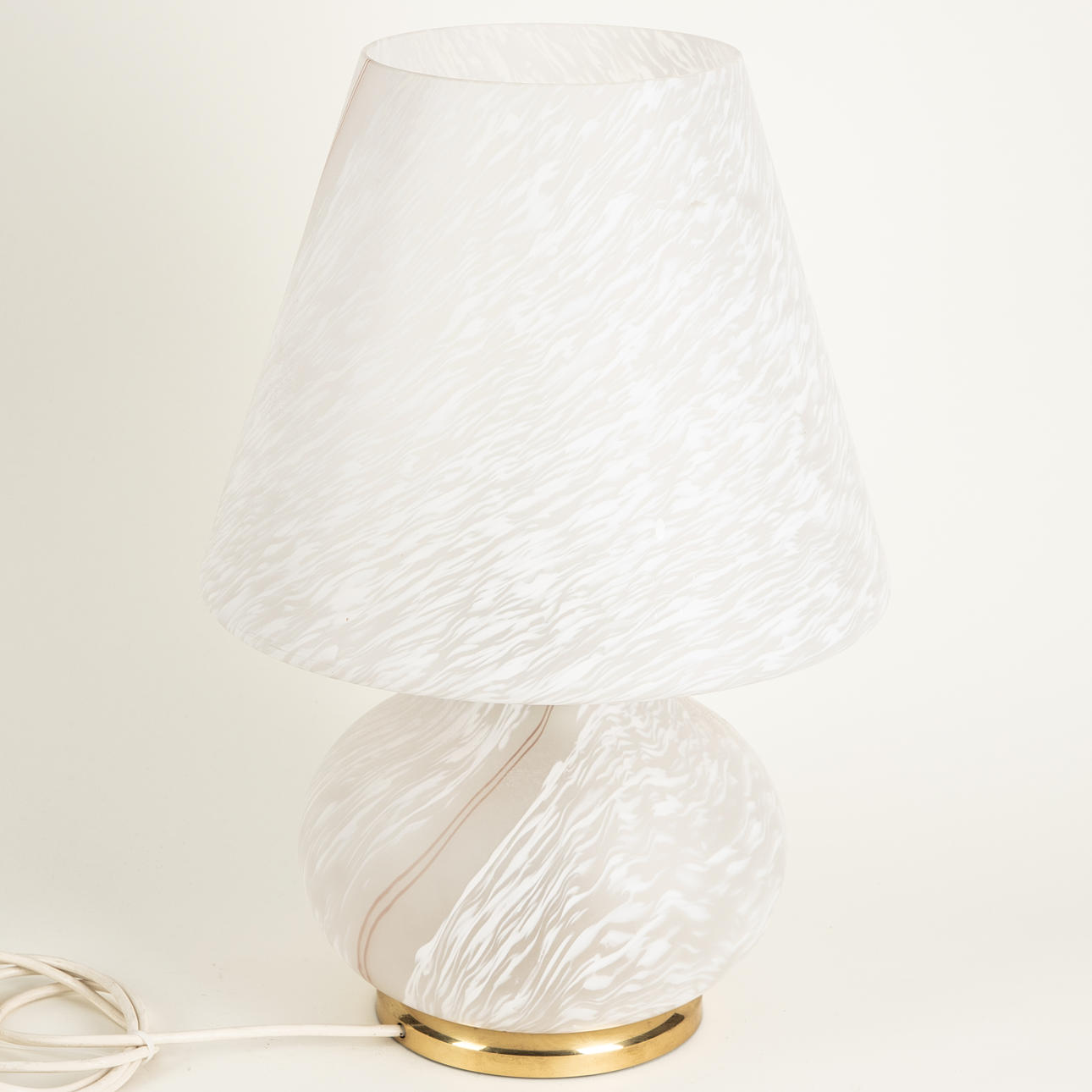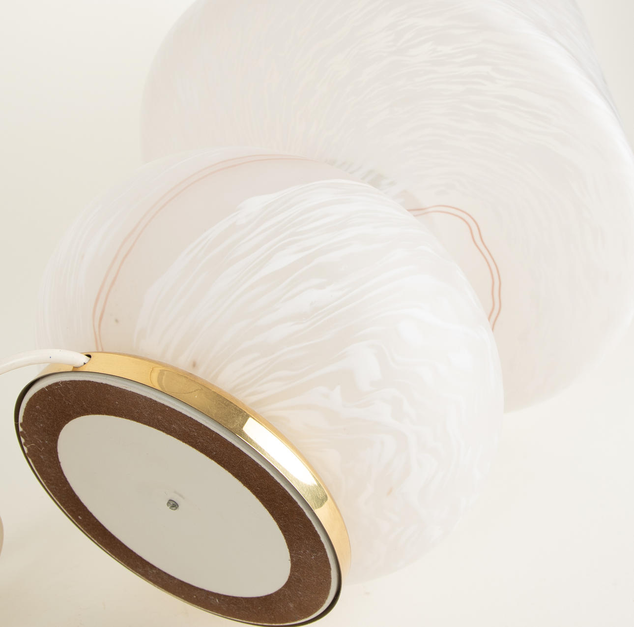 Glass with so-called Swirl pattern 1 lamp holder. Brass ring on the bottom. cca H: 53 cm x diameter 35 cm.