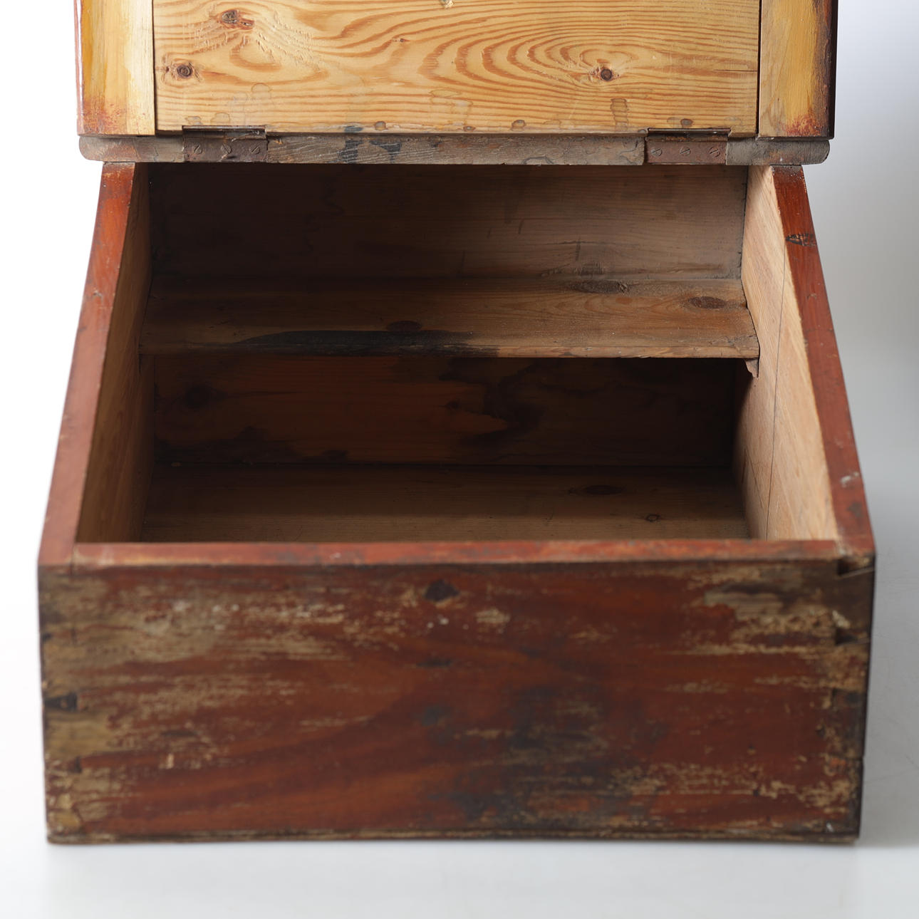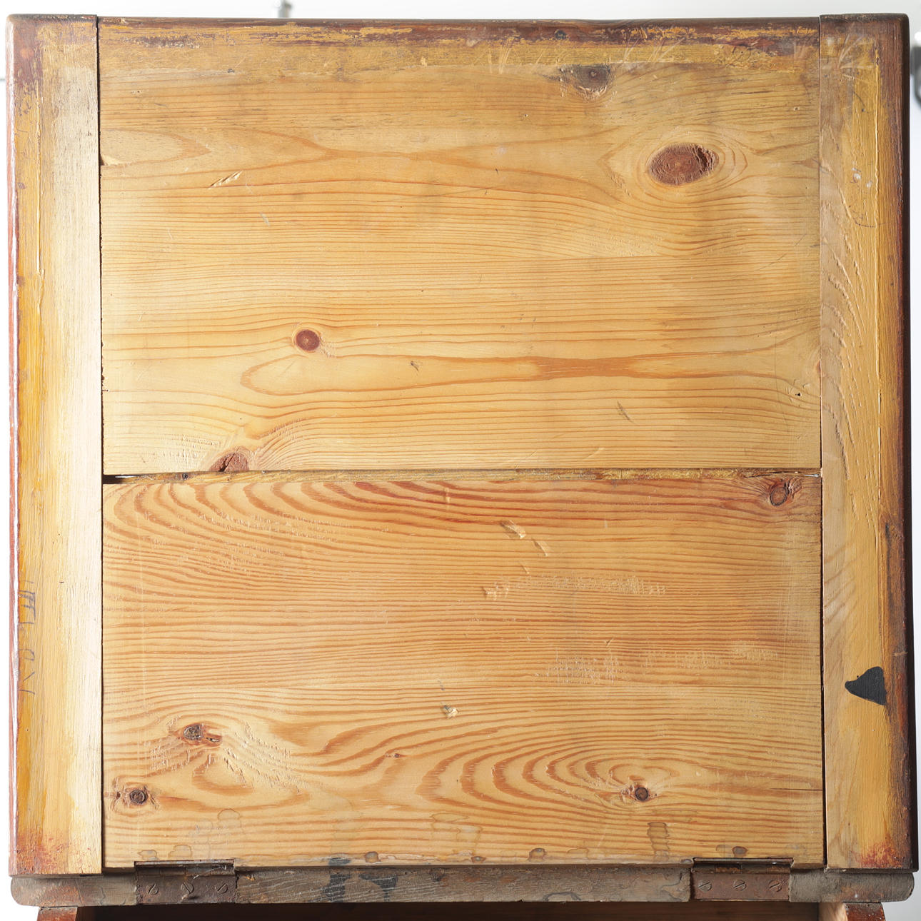 Writing desk, painted pine and back panel Length 47, width 58,5, height 37 cm.