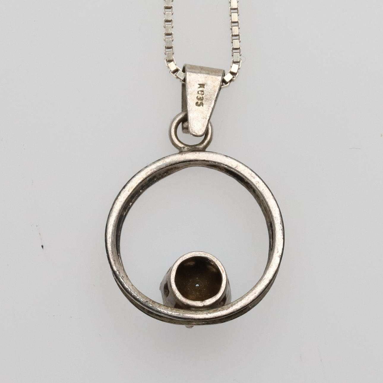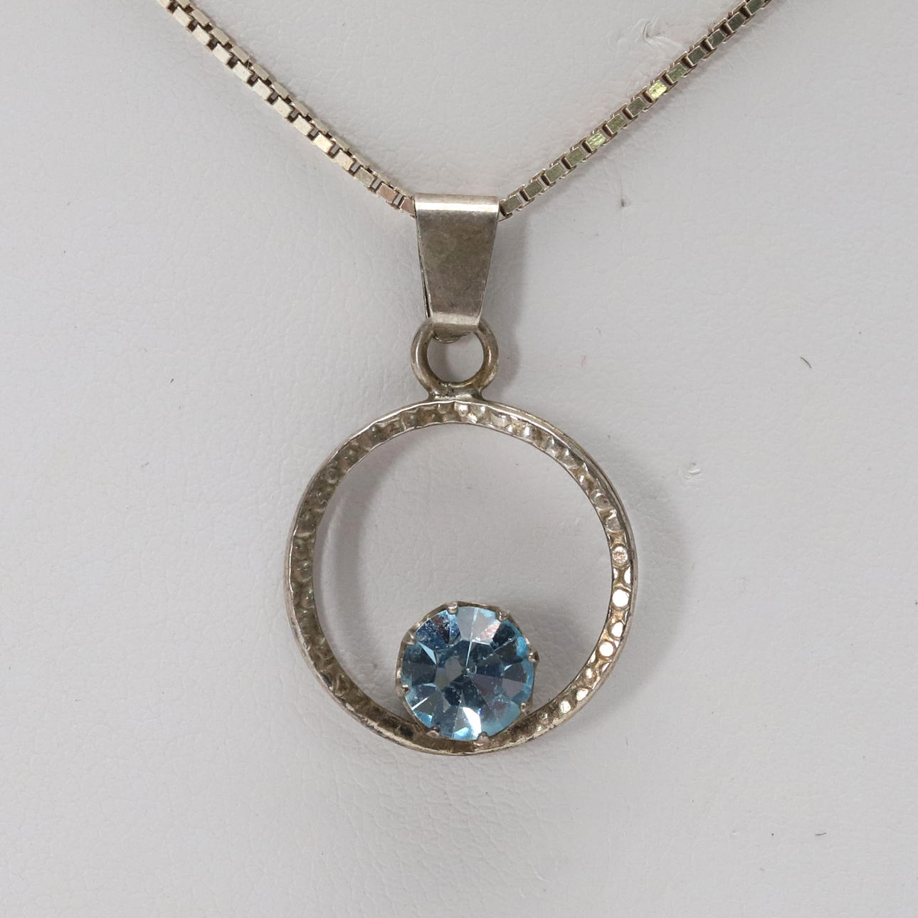 PENDANT WITH CHAIN, silver with blue stone.