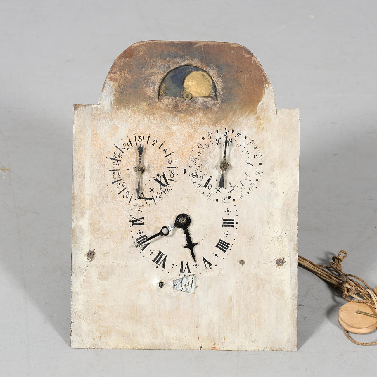 Usage and age-related wear. Wormholes. Cracks. Key and solder are missing. Timepiece not functional tested. Rear heavy and not stable.