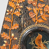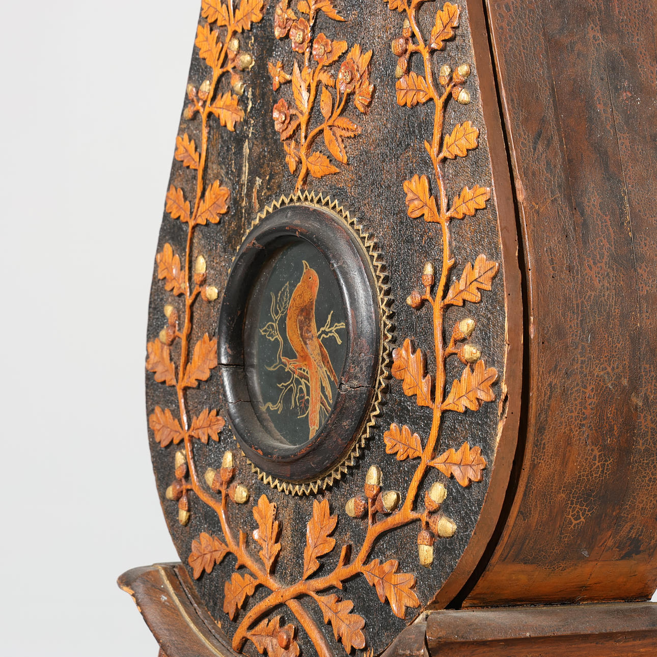 Relief decor of leaves and acorns. Painted glass.