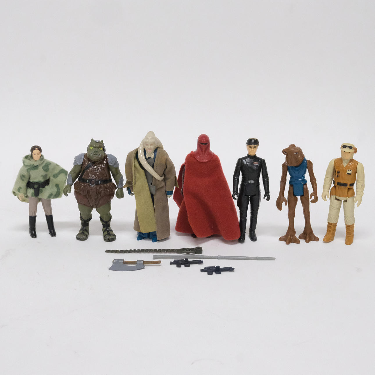 STAR WARS. SEVEN FIGURES, CASSETTE TAPE + BOOK.