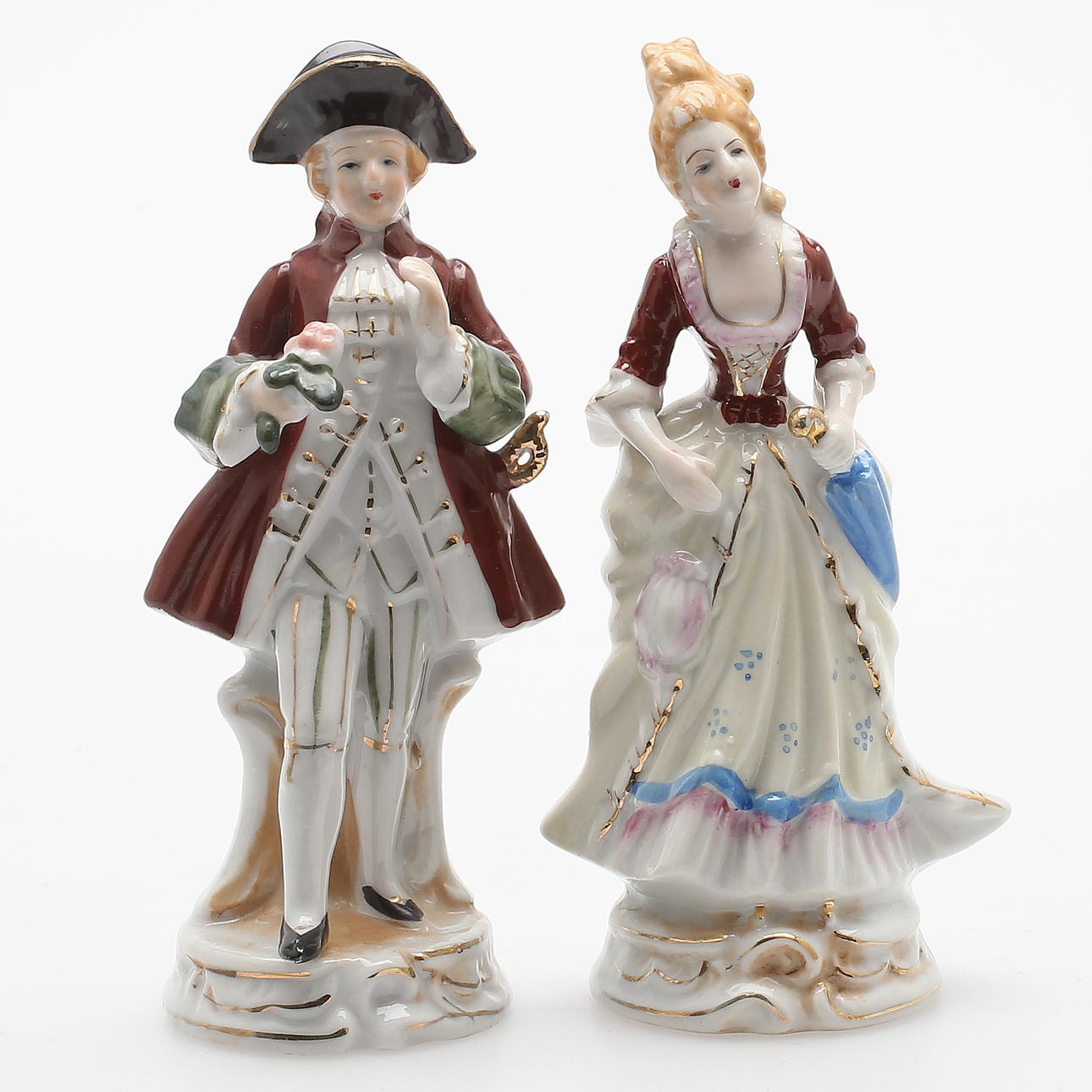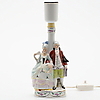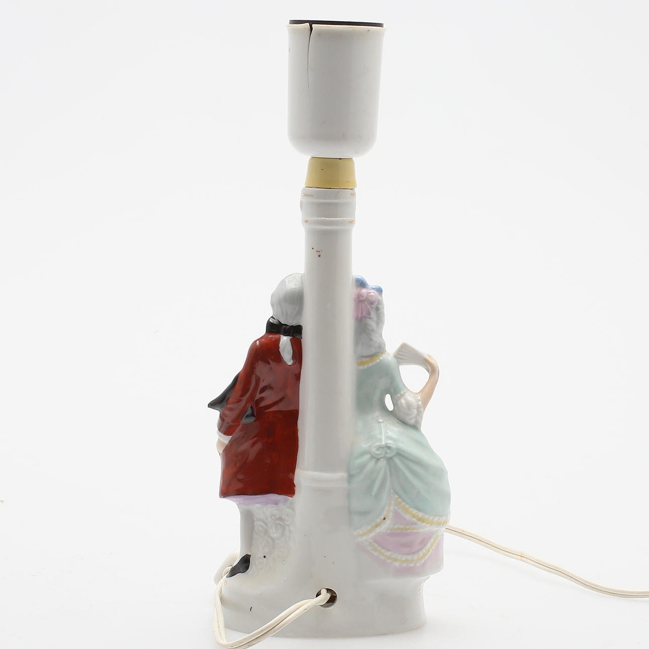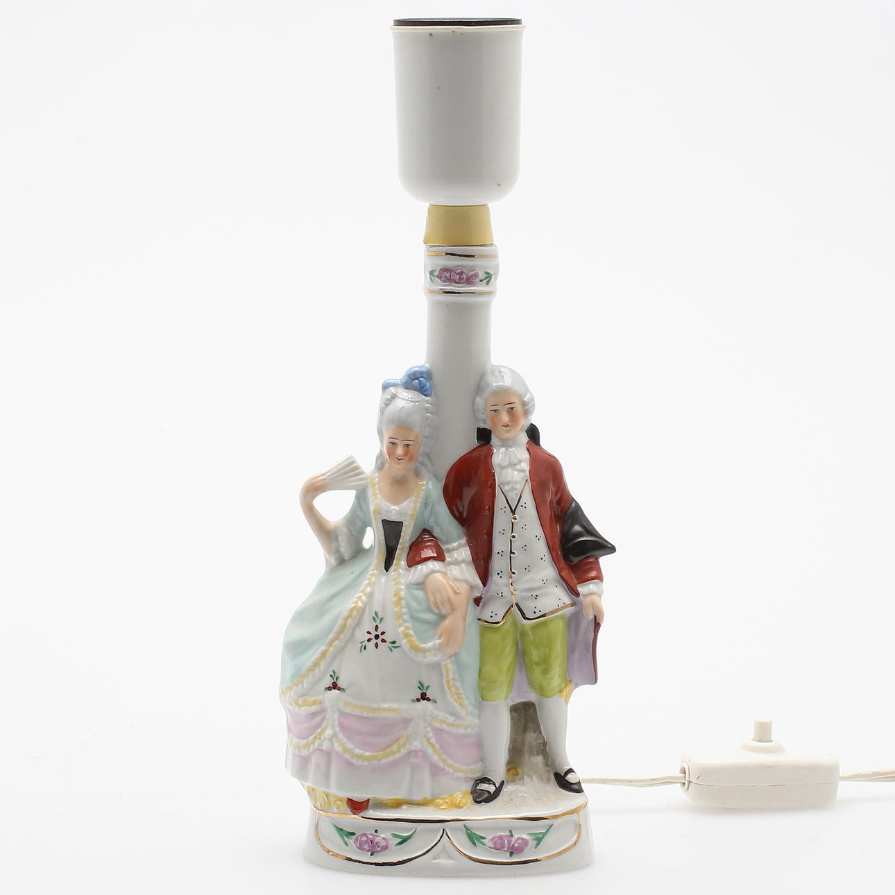 A pair of figurines, height approx. 16 cm, unmarked. Table lamp, height 29 cm, marked underneath.