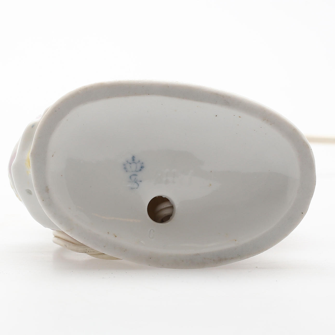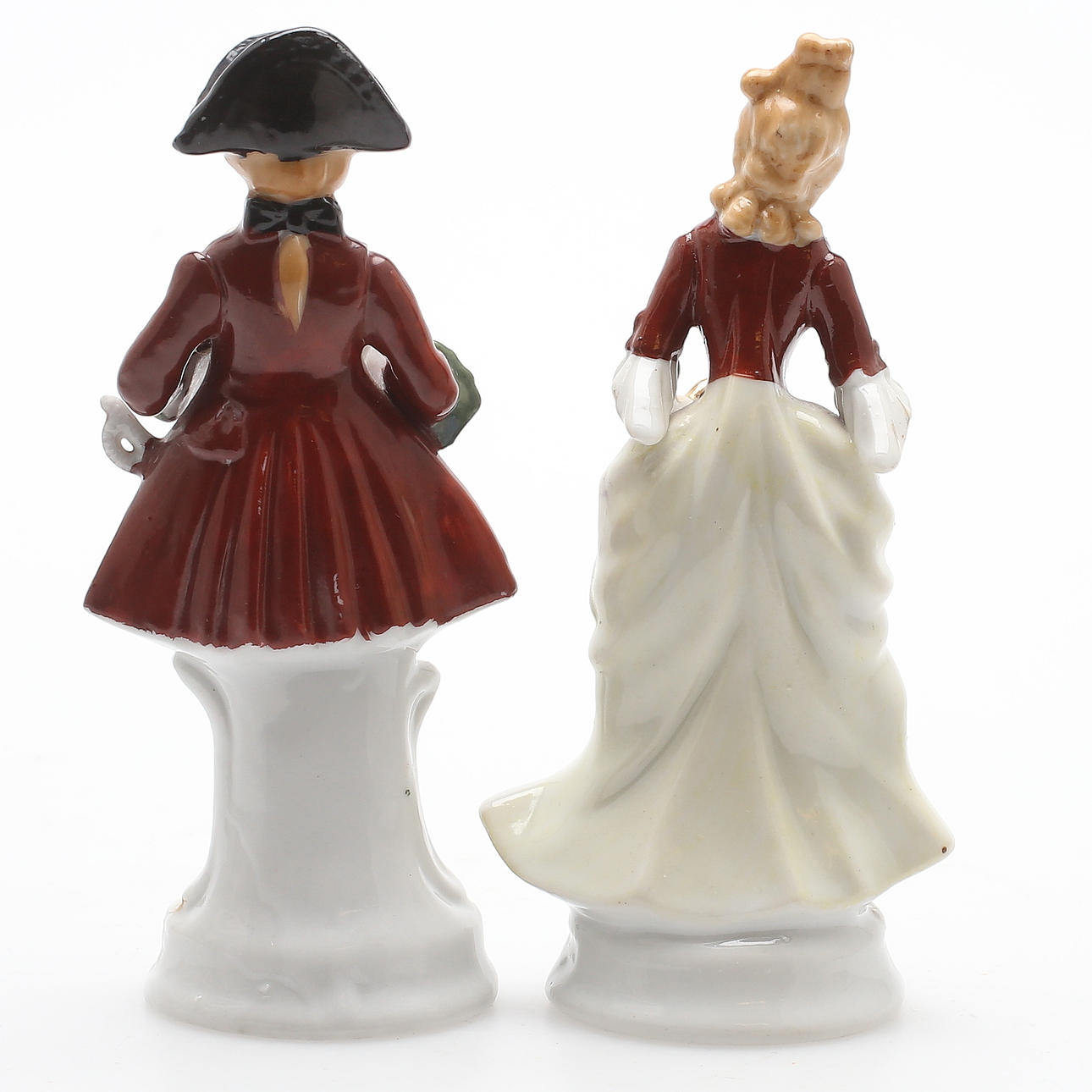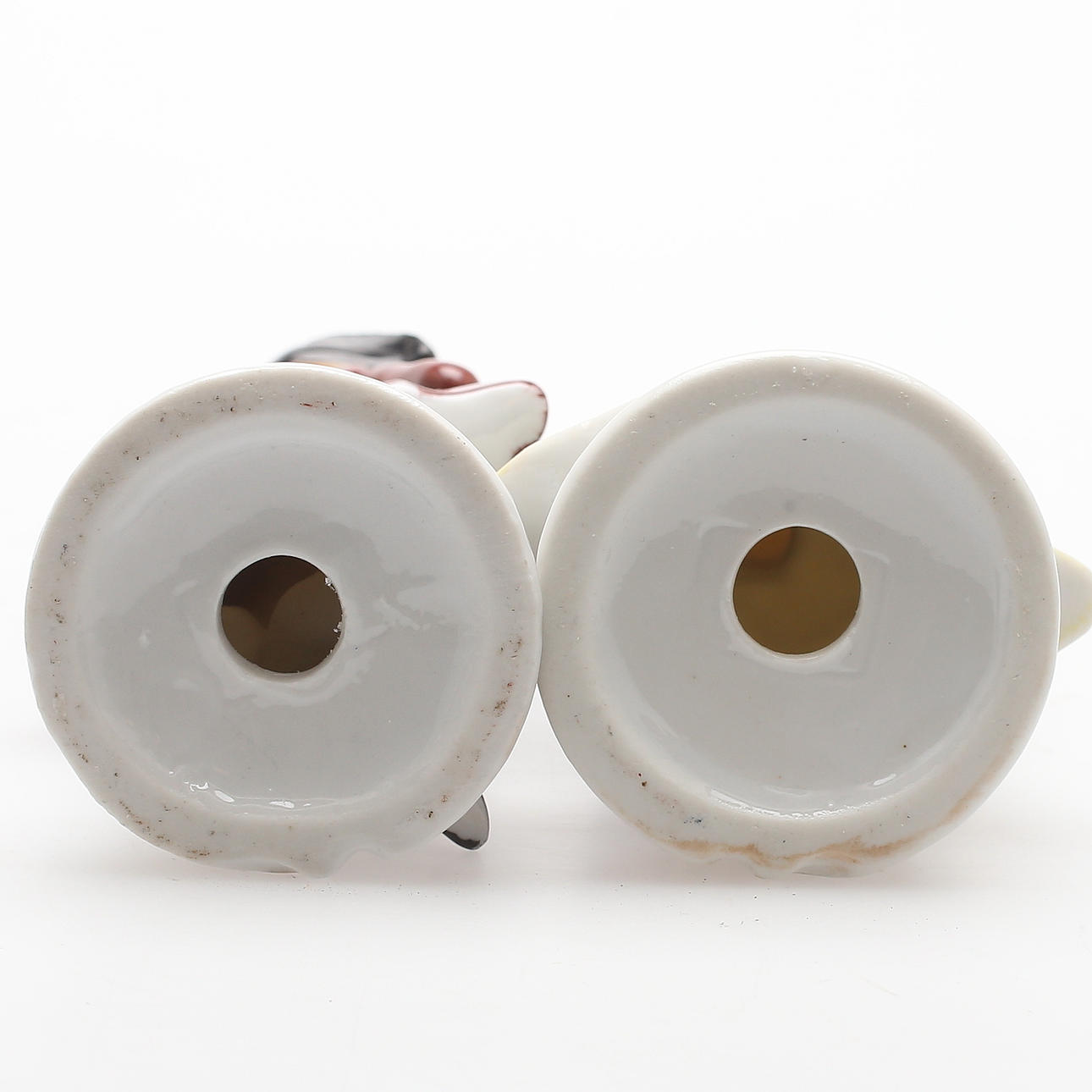 A pair of figurines, height approx. 16 cm, unmarked. Table lamp, height 29 cm, marked underneath.
