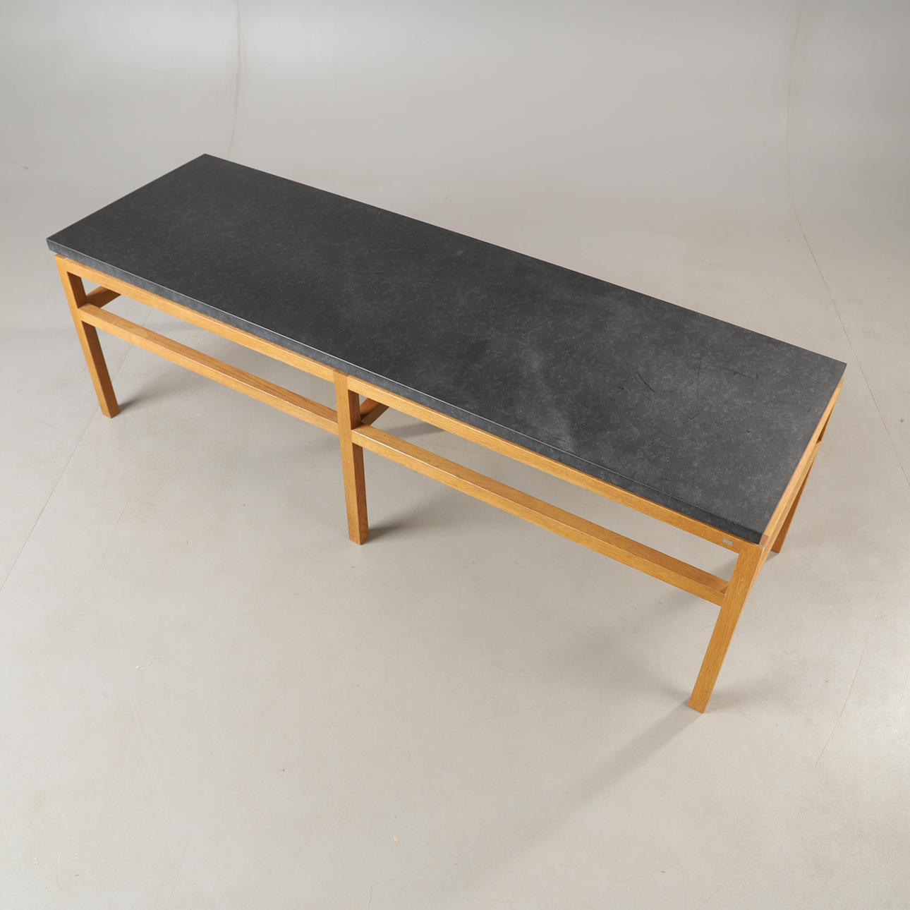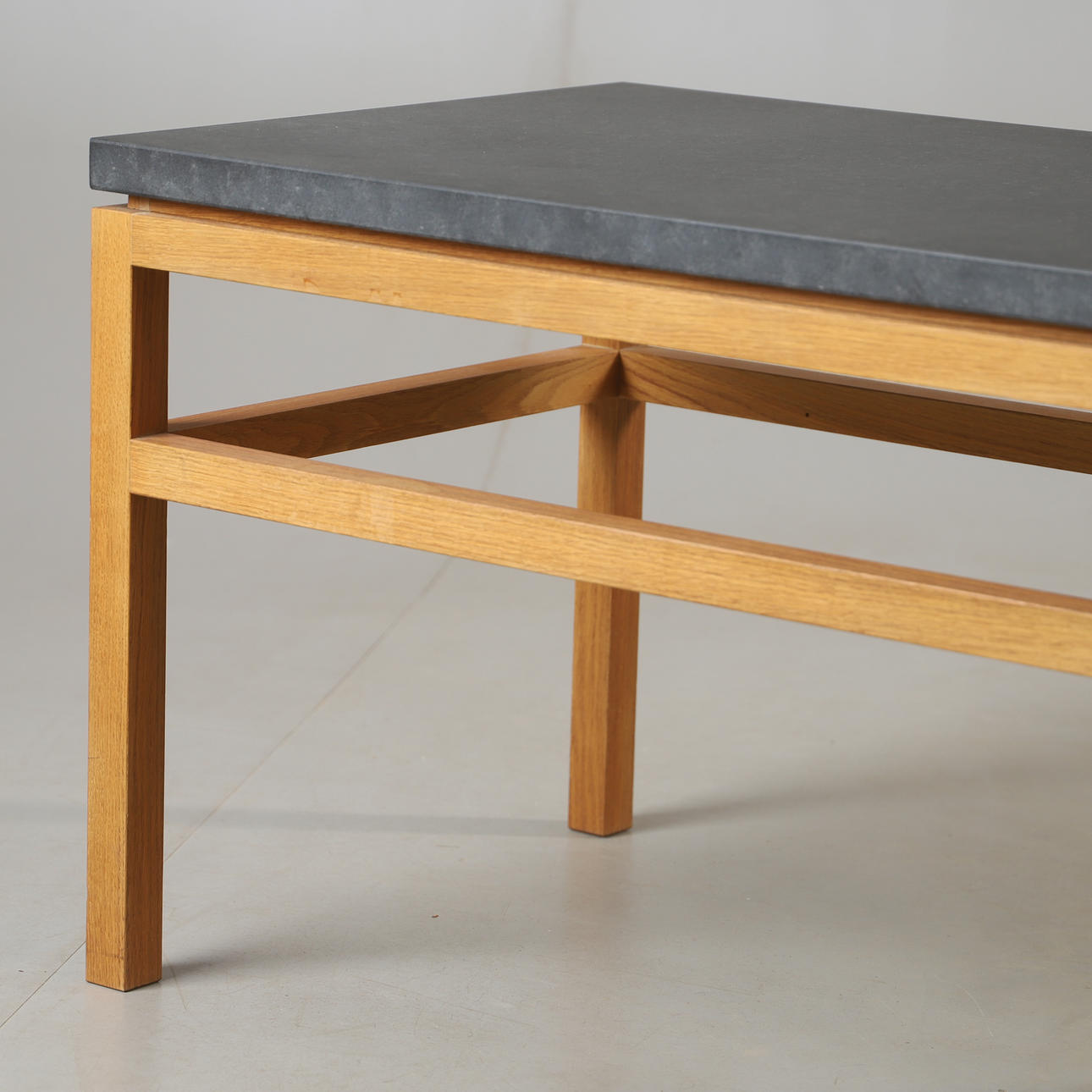 The legs are slightly retracted, creating an elegant silhouette and an airy impression. The table is available in several sizes, with or without a shelf. The integrated shelf provides an extra layer of function without taking the focus off the shape. A perfect place for books, magazines or everyday things. All parts are joined and sanded by hand — a piece of furniture that keeps its shape, feel and function over time.“.