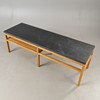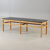 “Bläse coffee tables are made by hand on Gotland, where each board is cut with an angle grinder and then brushed to emphasize the unique texture of the wood. It is an adaptable table that can be ordered in different materials, finishes and with different boards.