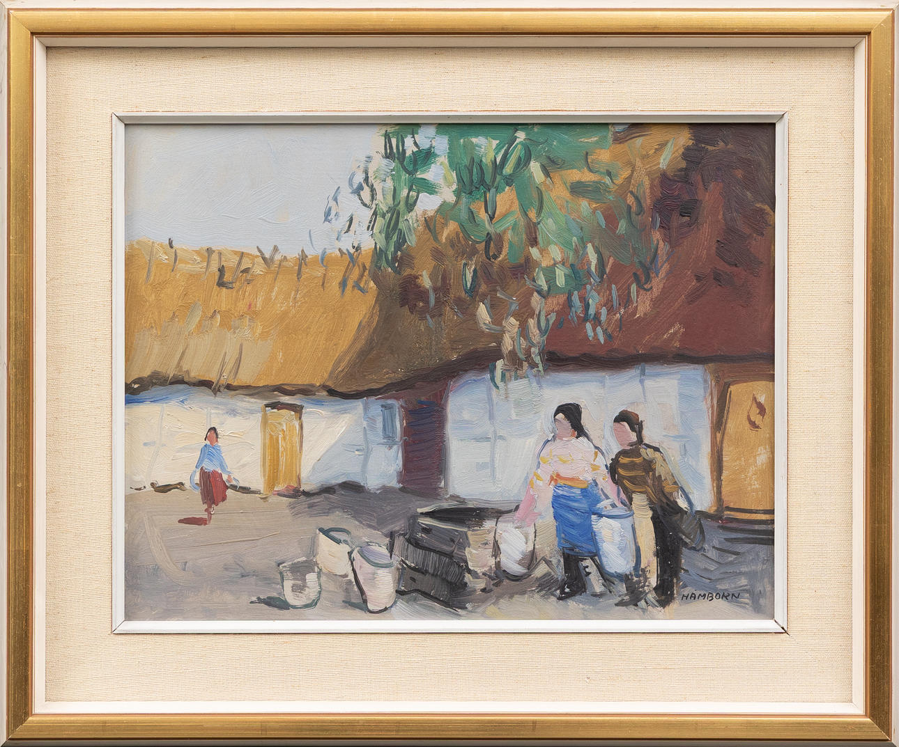 AXEL HAMBORN. At the well, oil on panel, signed.