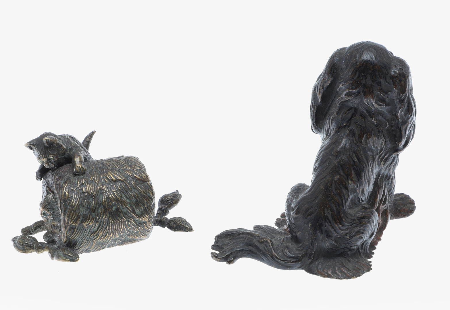 4943107. COLD PAINTED BRONZE DOG & CAT GROUP.