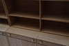 4 sections. Double doors and removable shelves. Burn-stamped. Several boxes with decor.