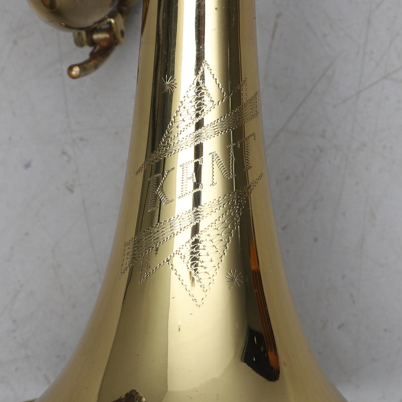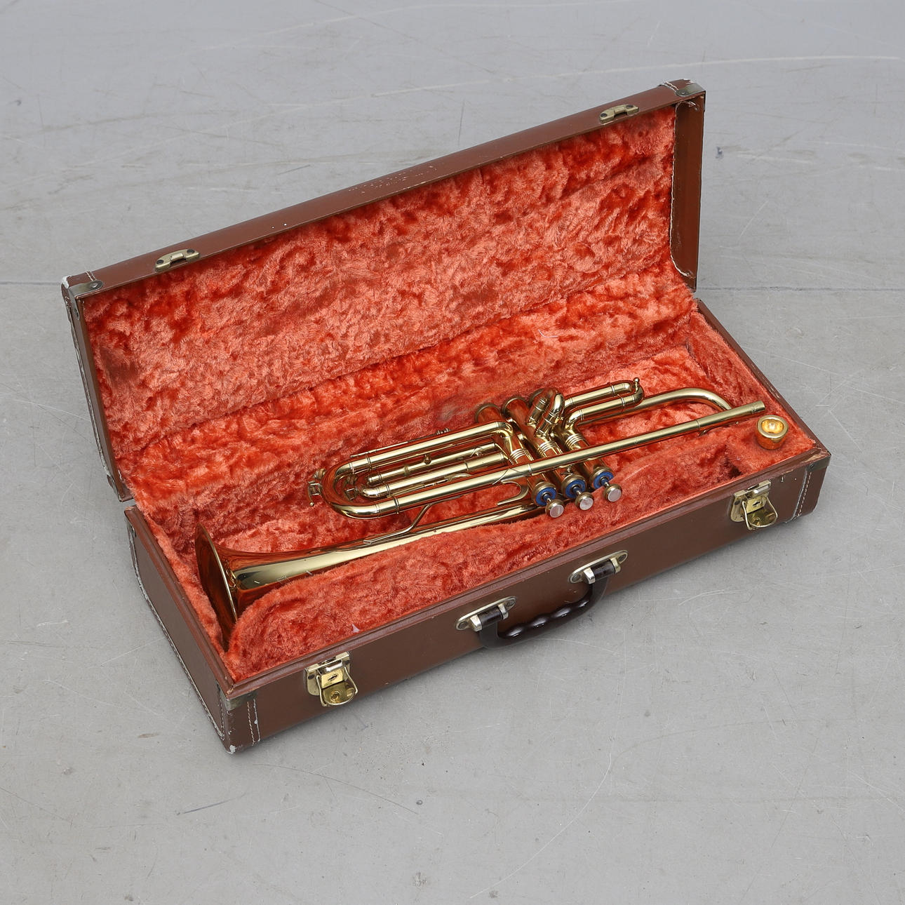 Length with nozzle approx. 55 cm. Bag dimensions approx. 53,5x20x145 cm. Nozzle, “Denis Wick London”. 001228.