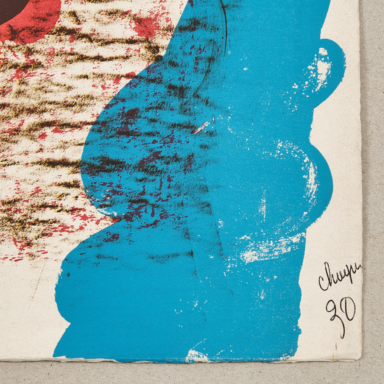 KAREL APPEL. Composition, signed and dated 1963, indistinctly titled, lithograph in colours.