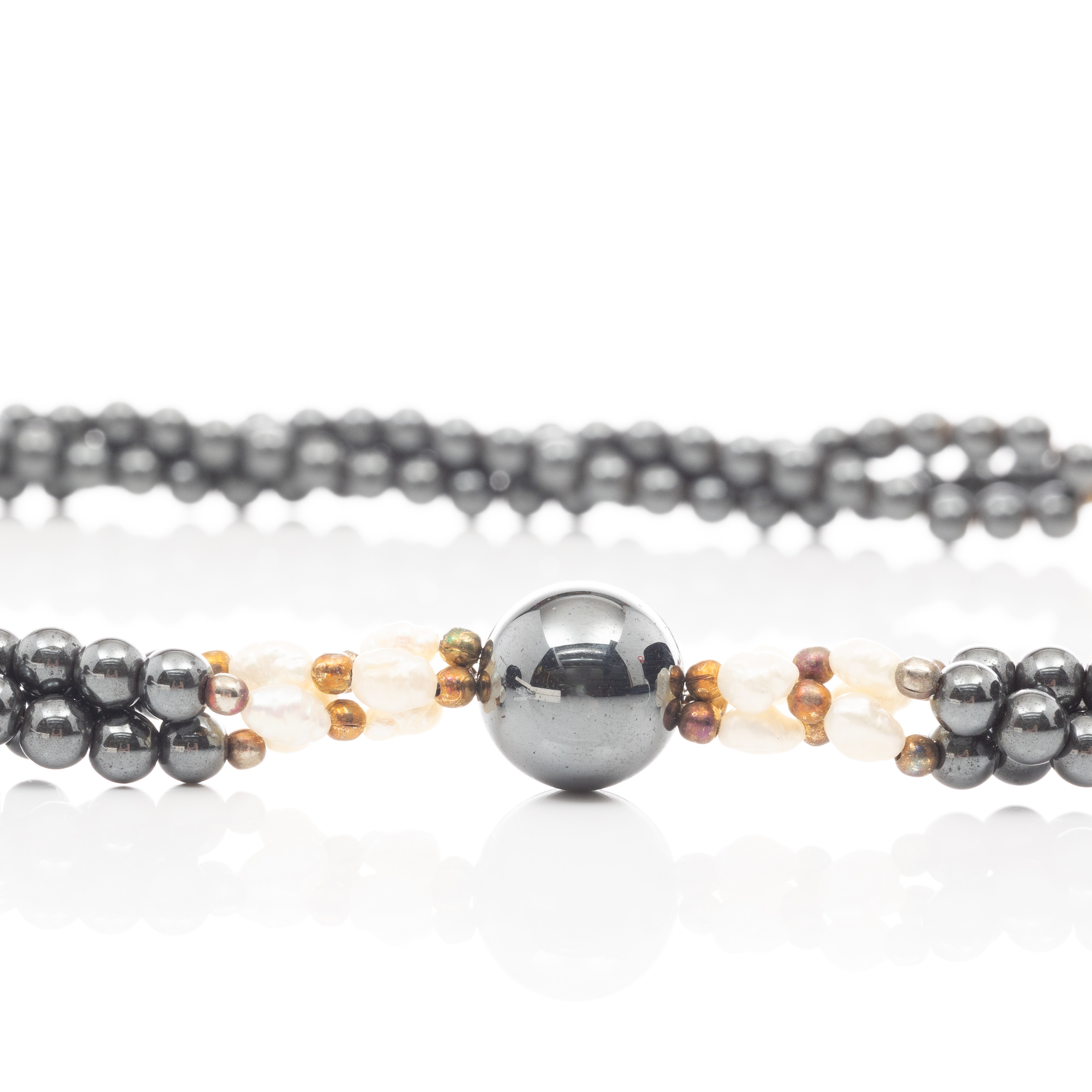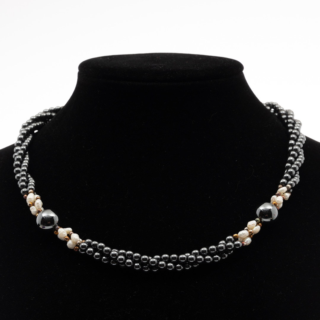 4943876. NECKLACE, 2 pcs, Silver, Pearls, Hematite.