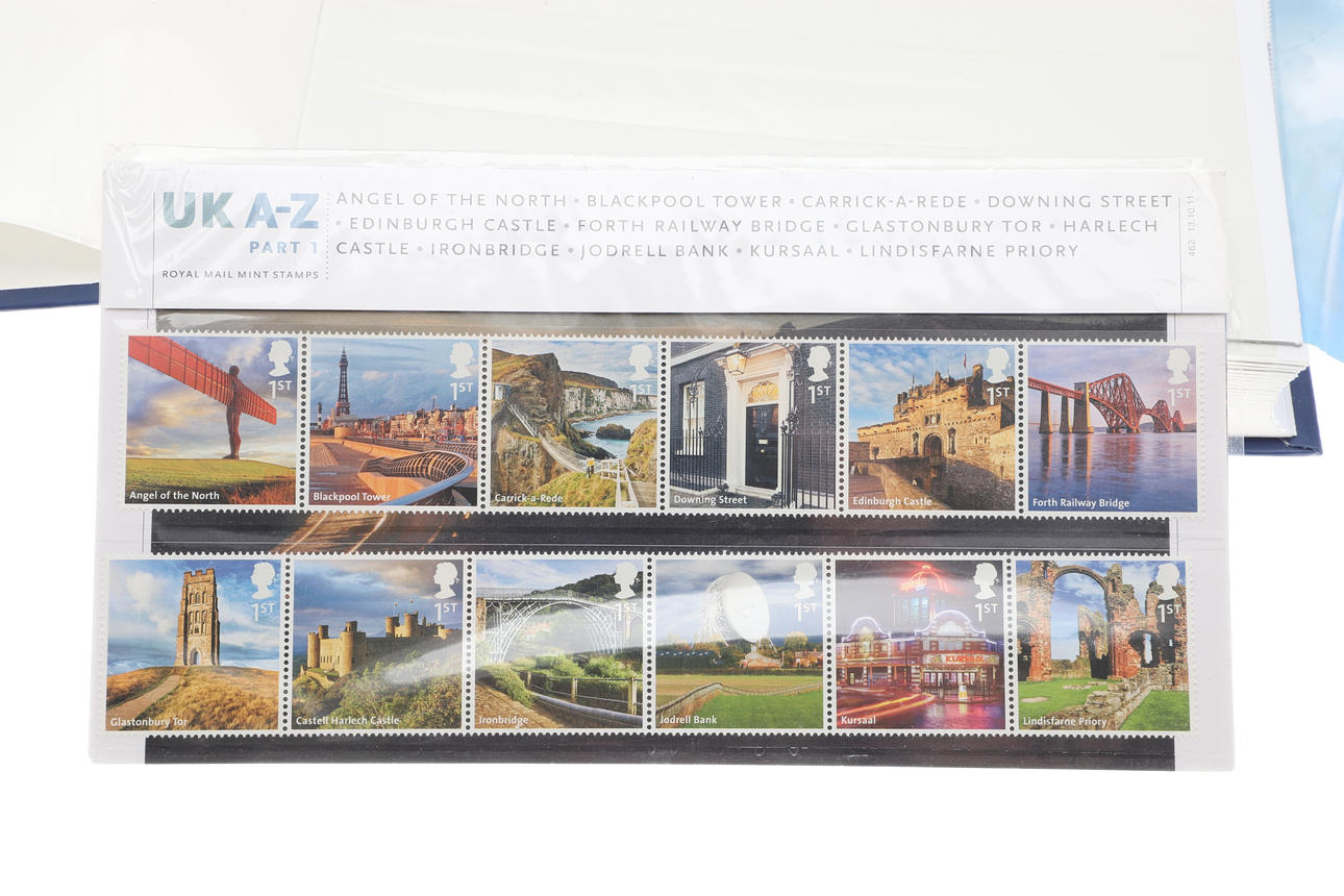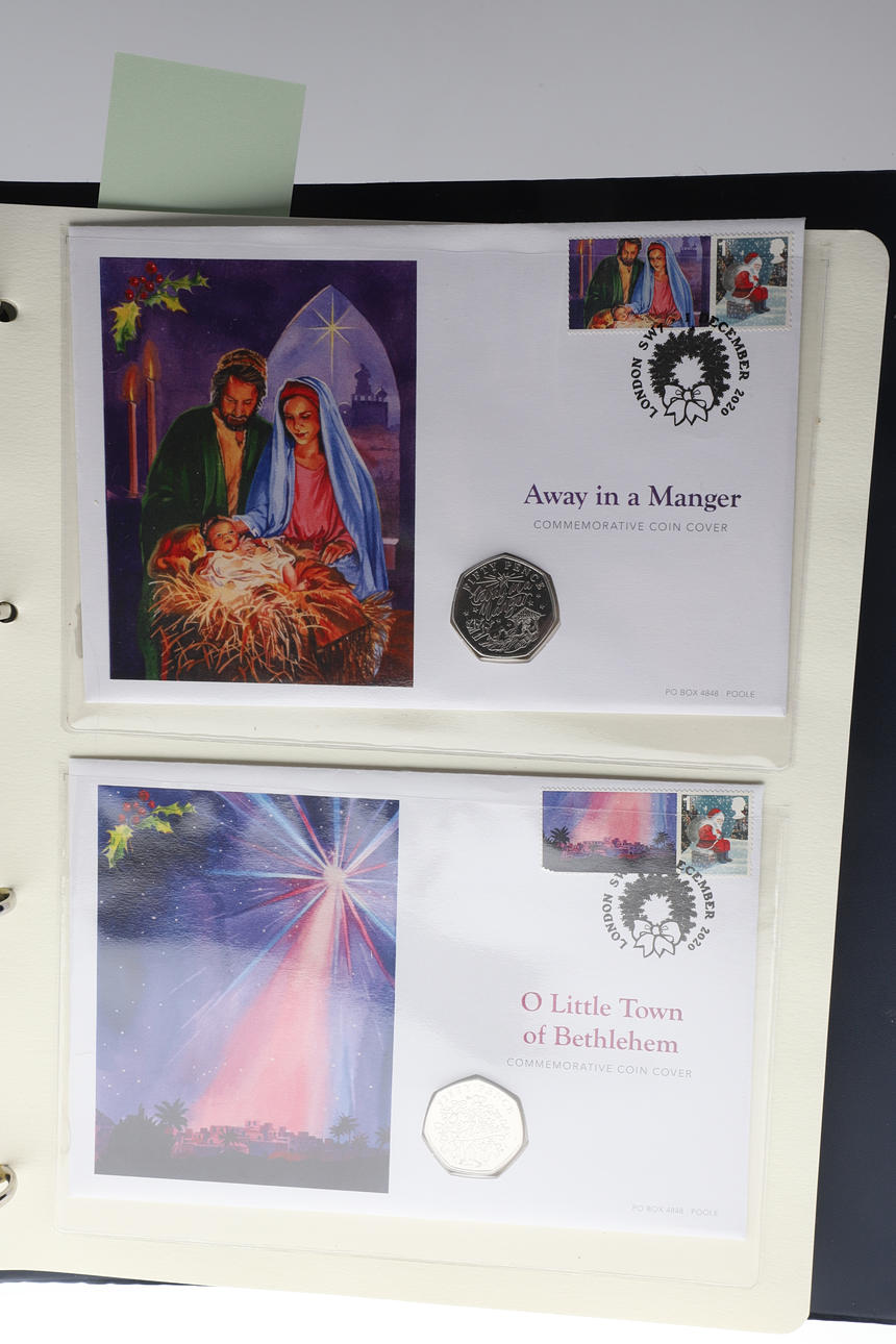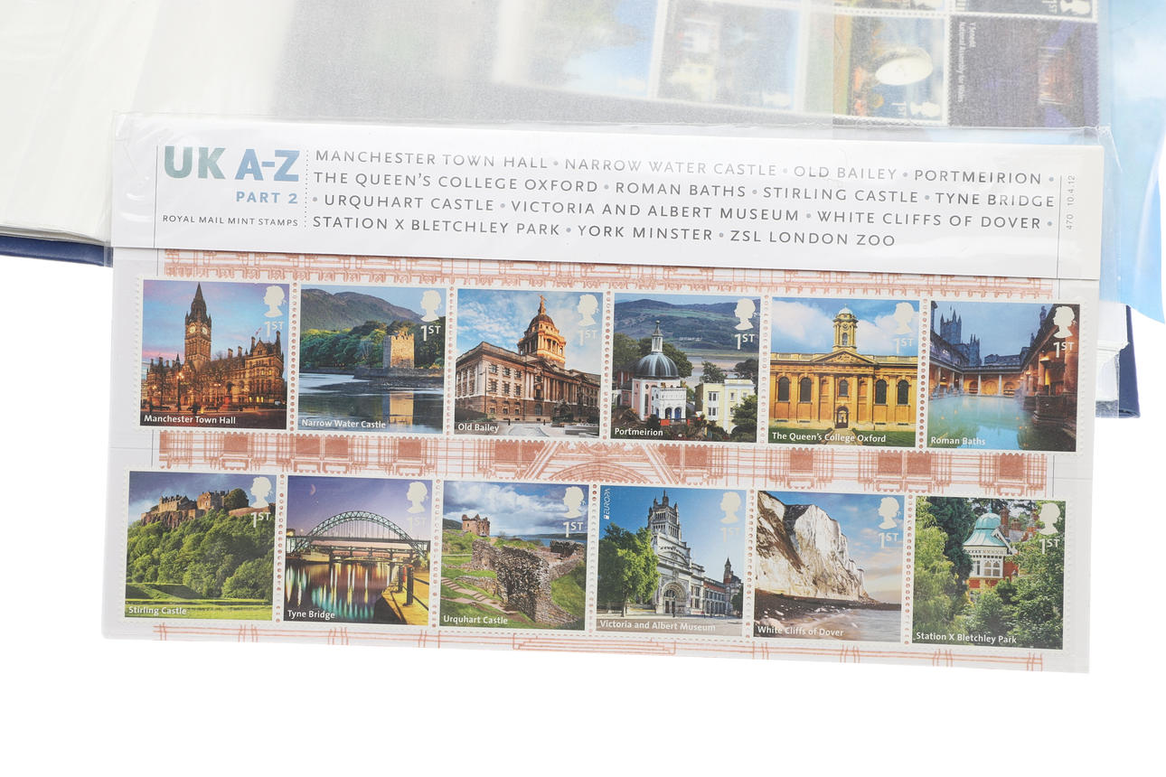 A mixed lot including a stock book with mint GB stamps (London 2012 Olympics and others, stamp packs etc), coin covers including Pantomine and Christmas Carol, album with mint Commonwealth stamps.