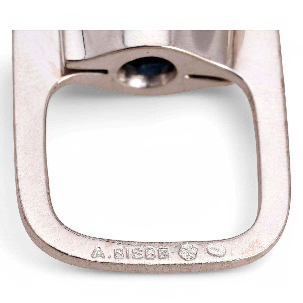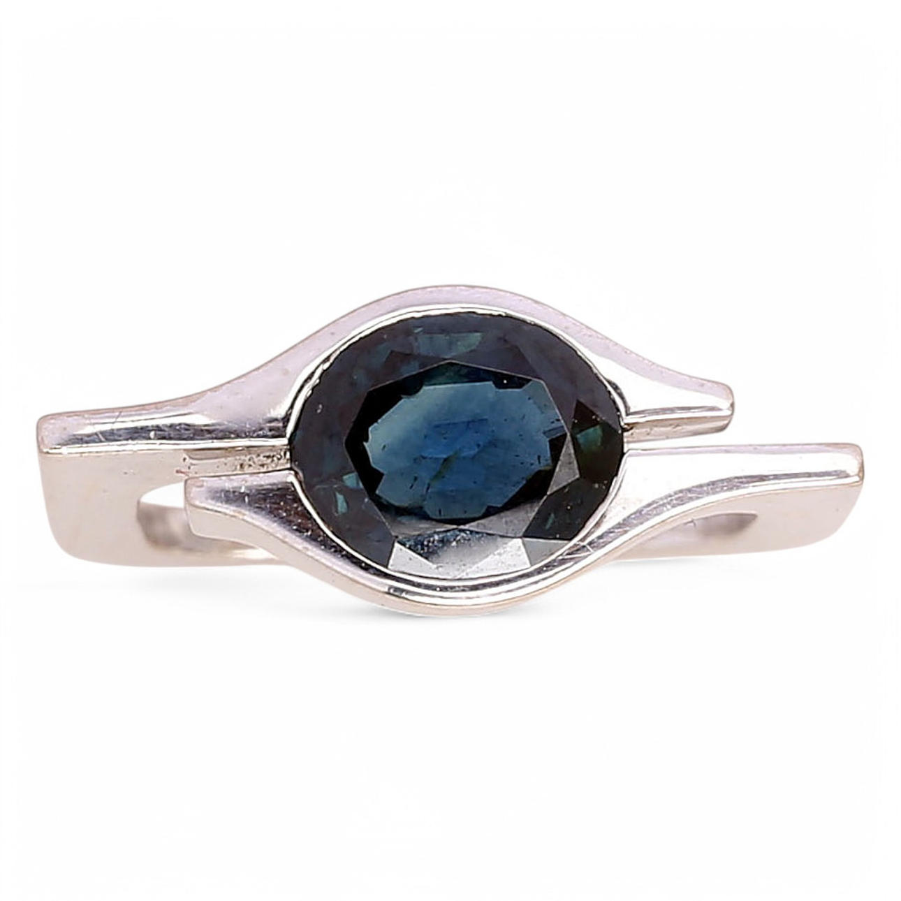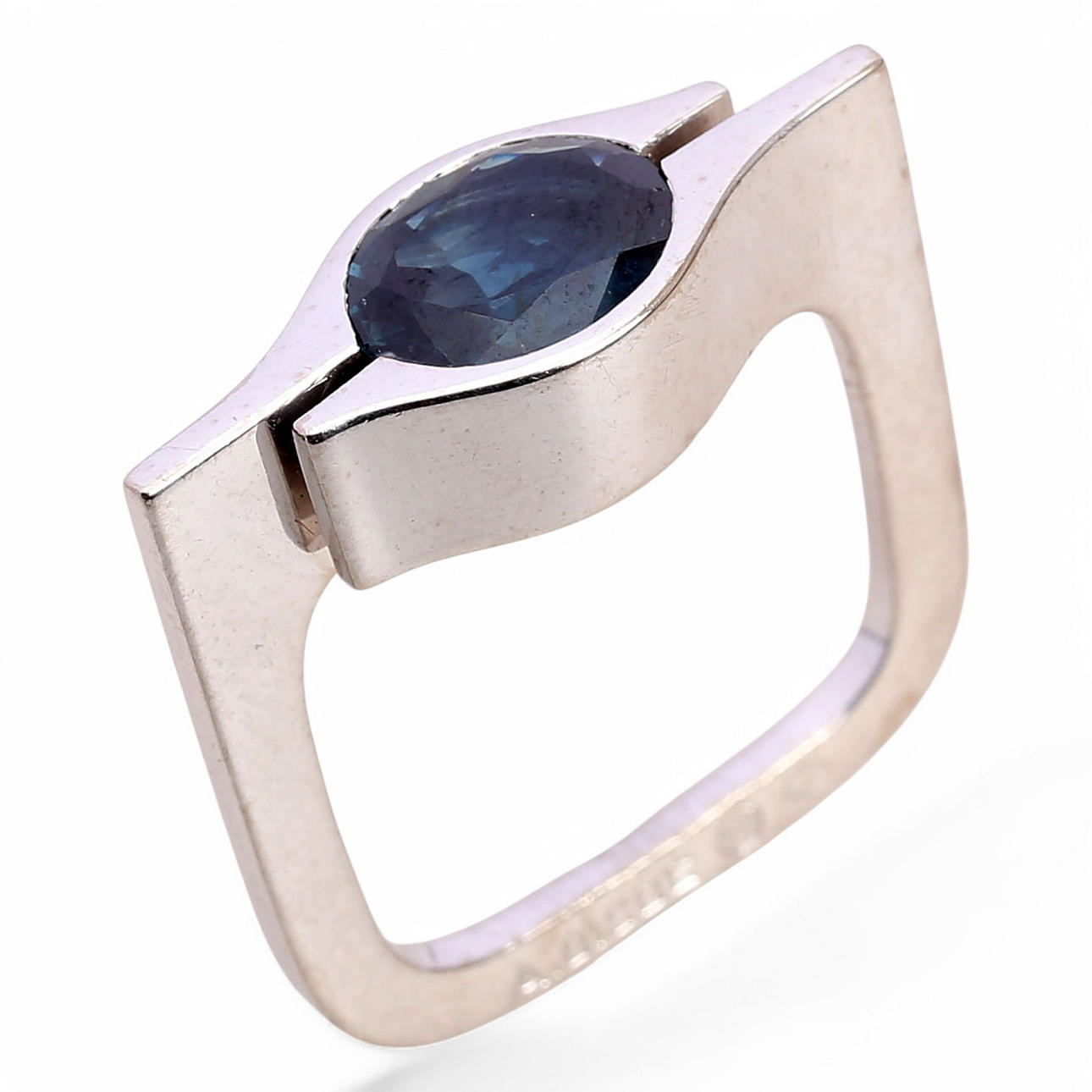 18K white gold and oval cut sapphire, approx. 1.80 cts. Hallmarked and signed. Size 13/53. 9 gr.