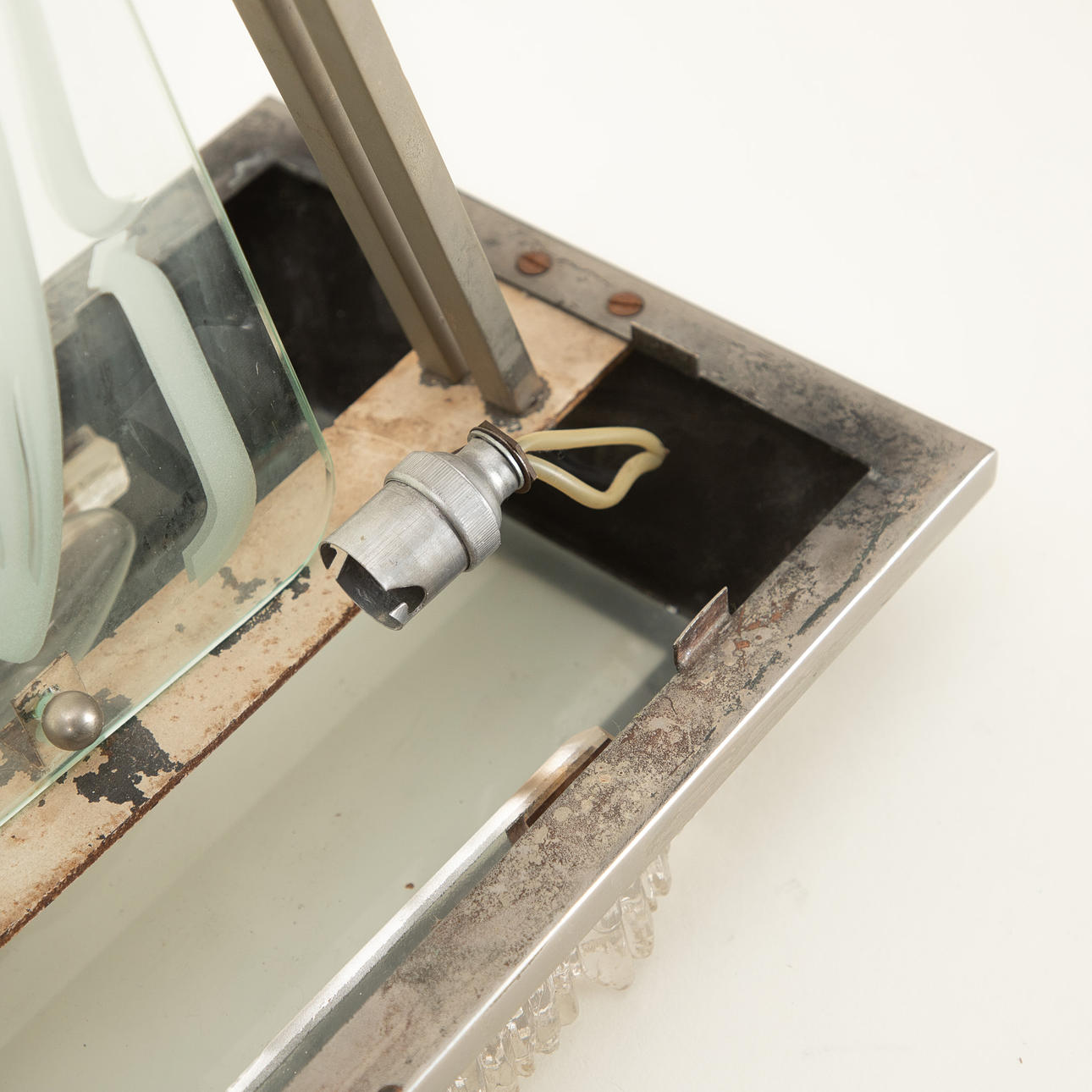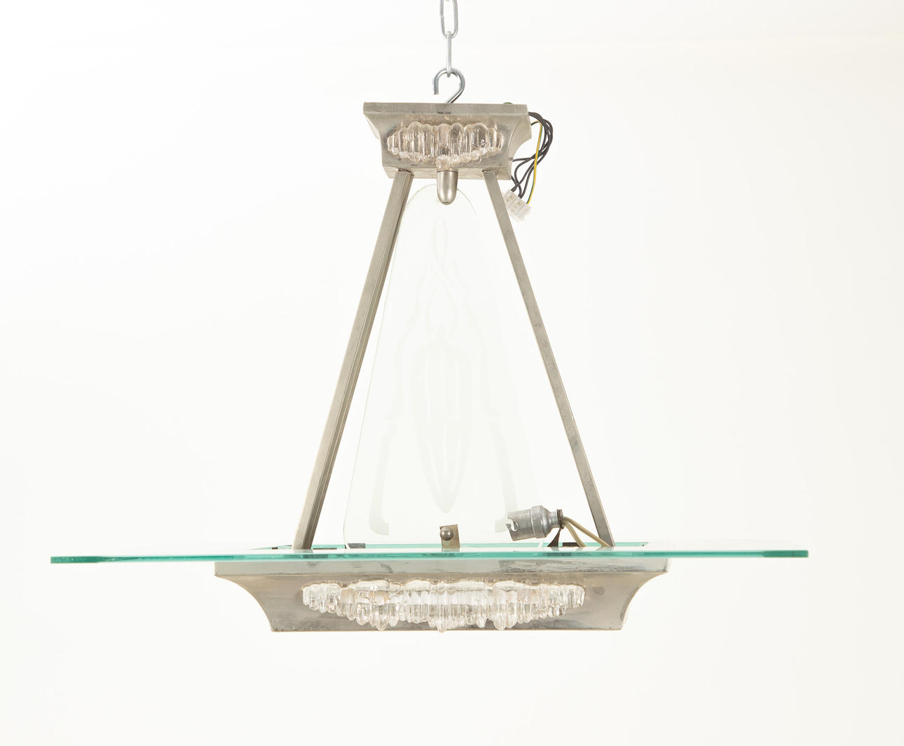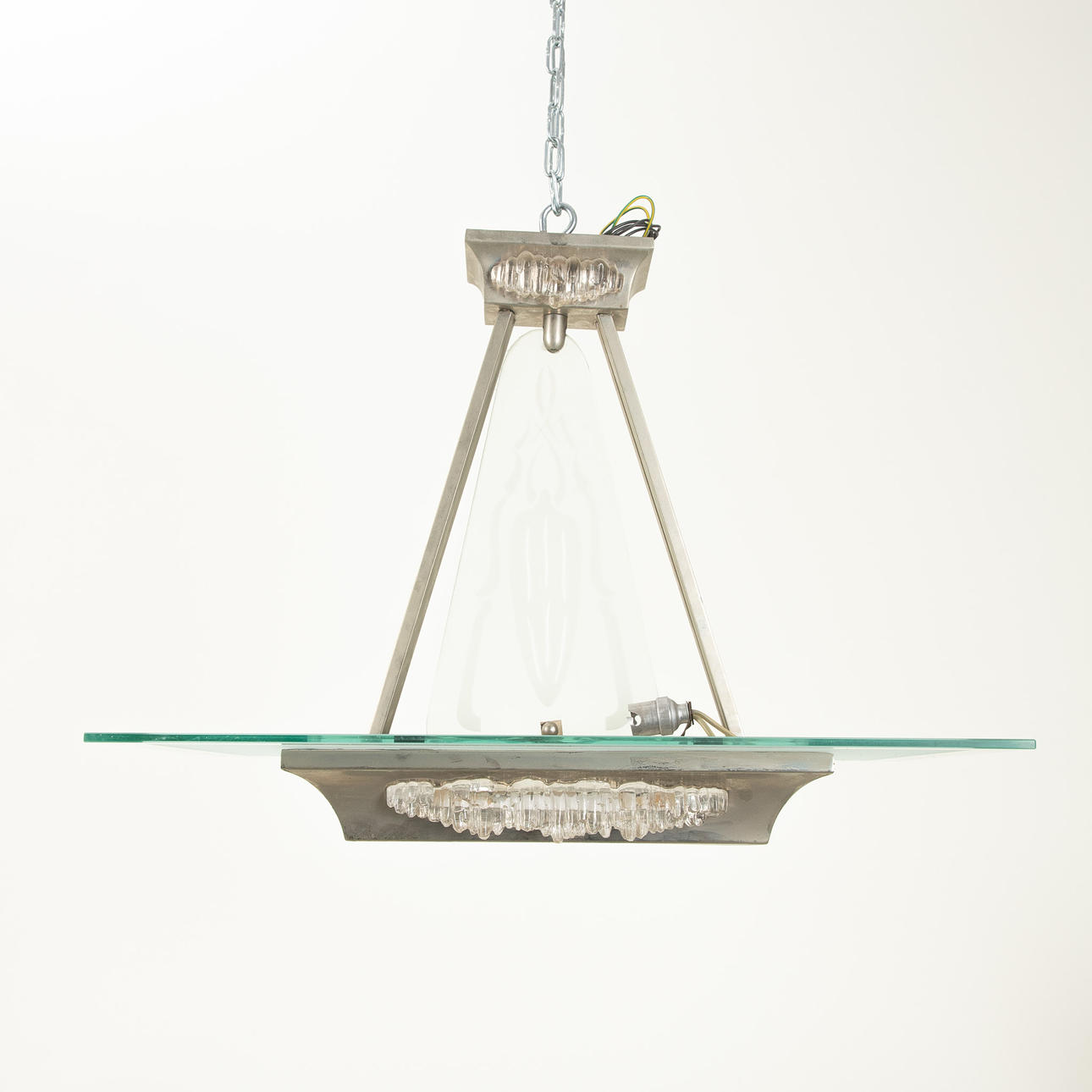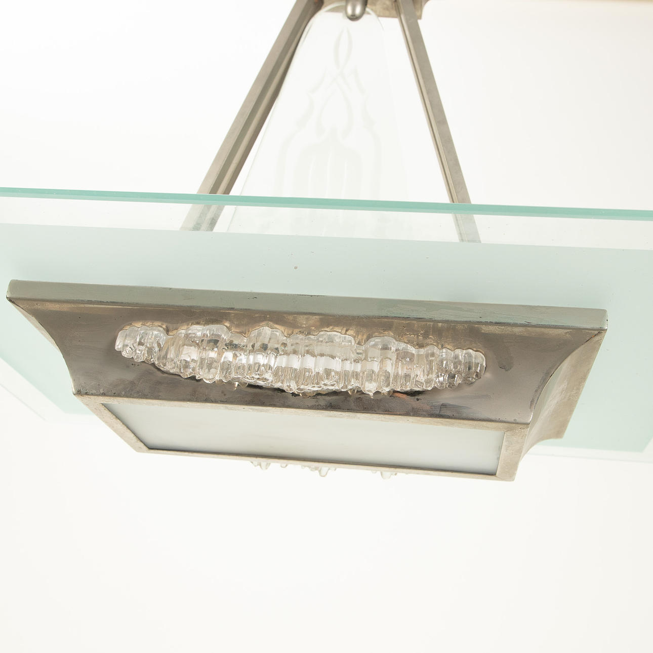 Nickel-plated brass Sog. Ice glass decor, etched glass plate. Frosted glass panel later.