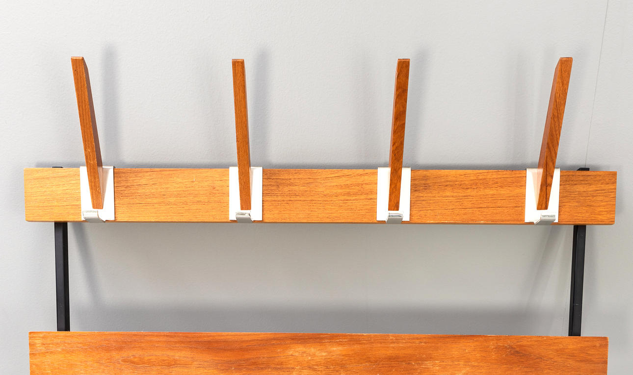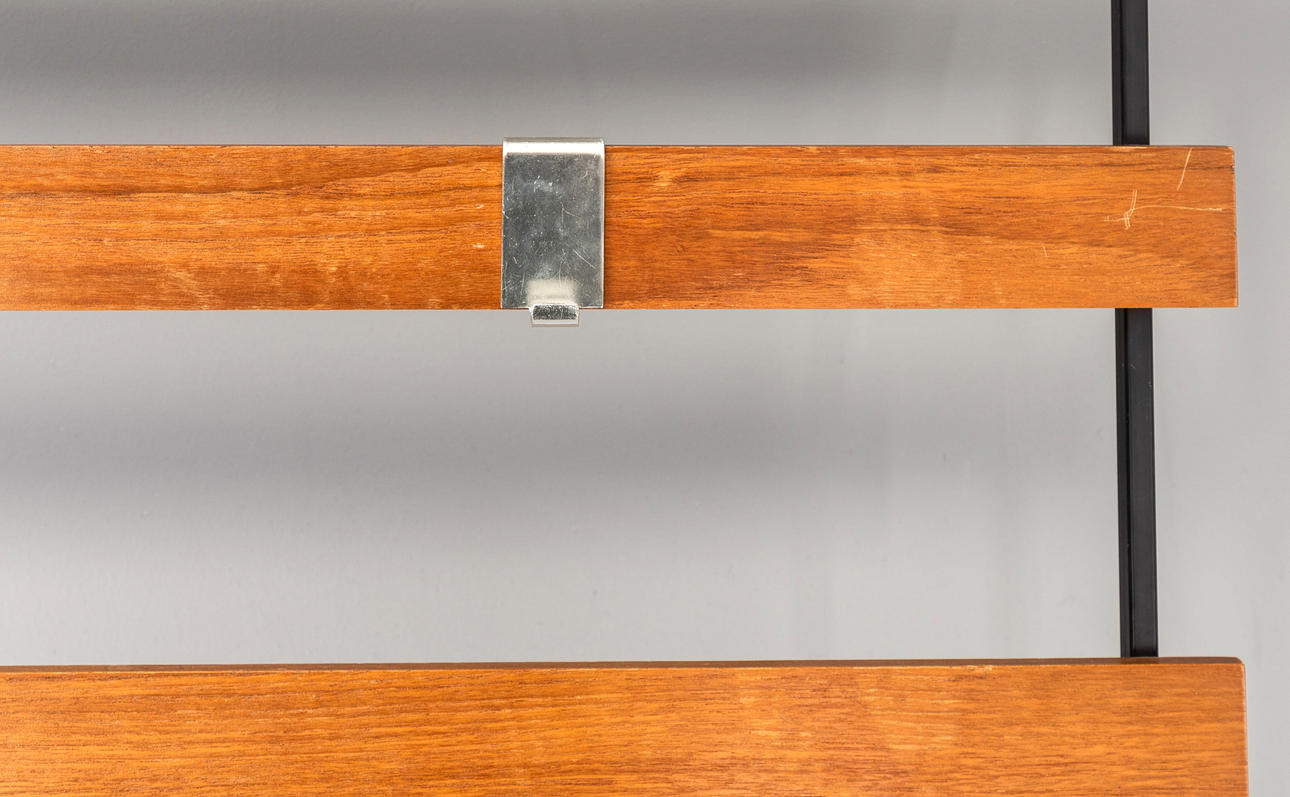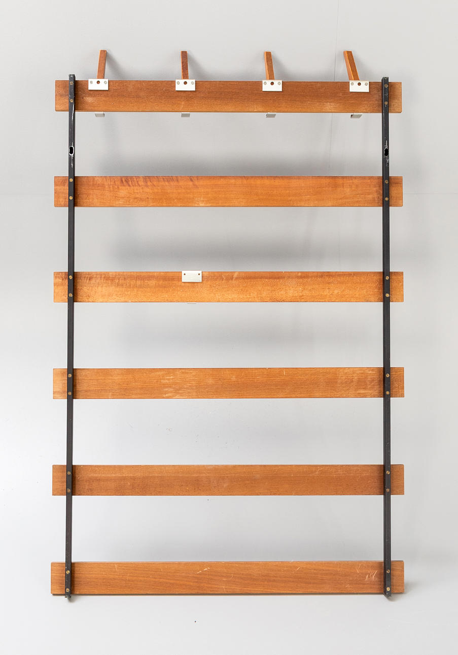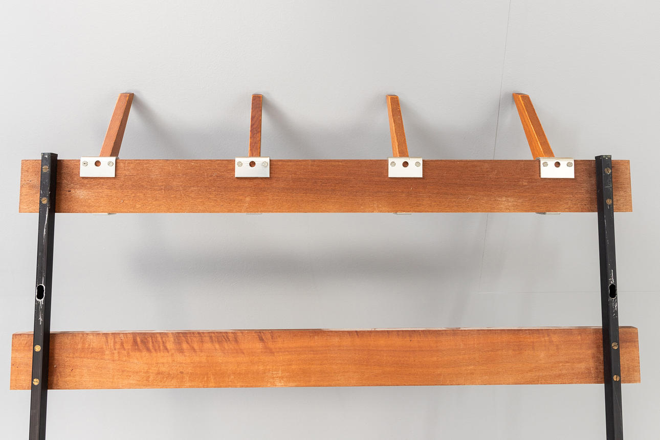 Teak and chrome-plated metal cca H. 130 cm x W 80 cm.