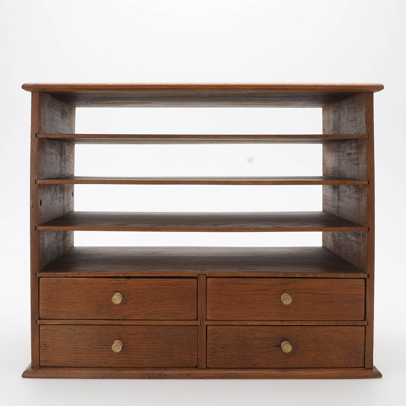 Shelf with 4 boxes. Length 42,5 cm, depth 27 cm, height 53 cm.