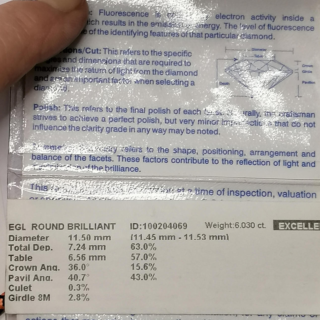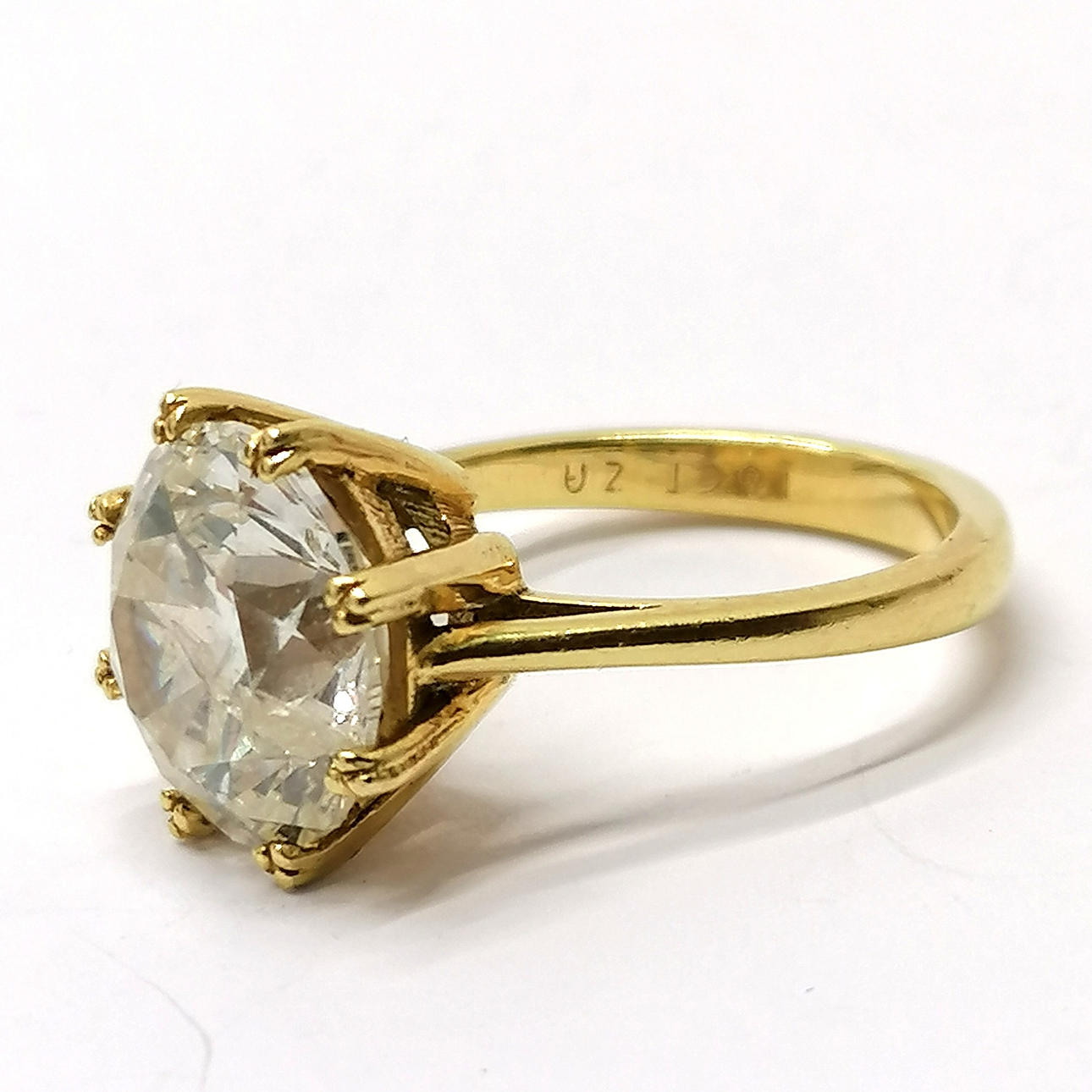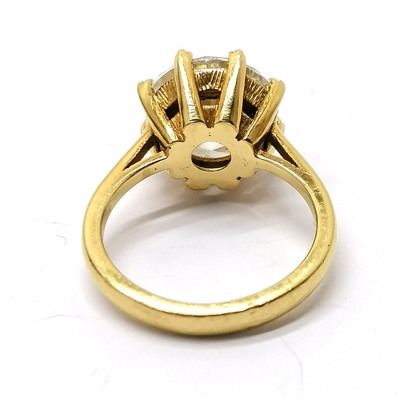 18ct gold 6ct diamond solitaire ring - size M & 7g total weight ~ Diamond certificate states 11.5mm diameter x 7.2mm deep & 6.03cts Colour K Clarity I1 & new replacement value stated as £60,000.