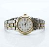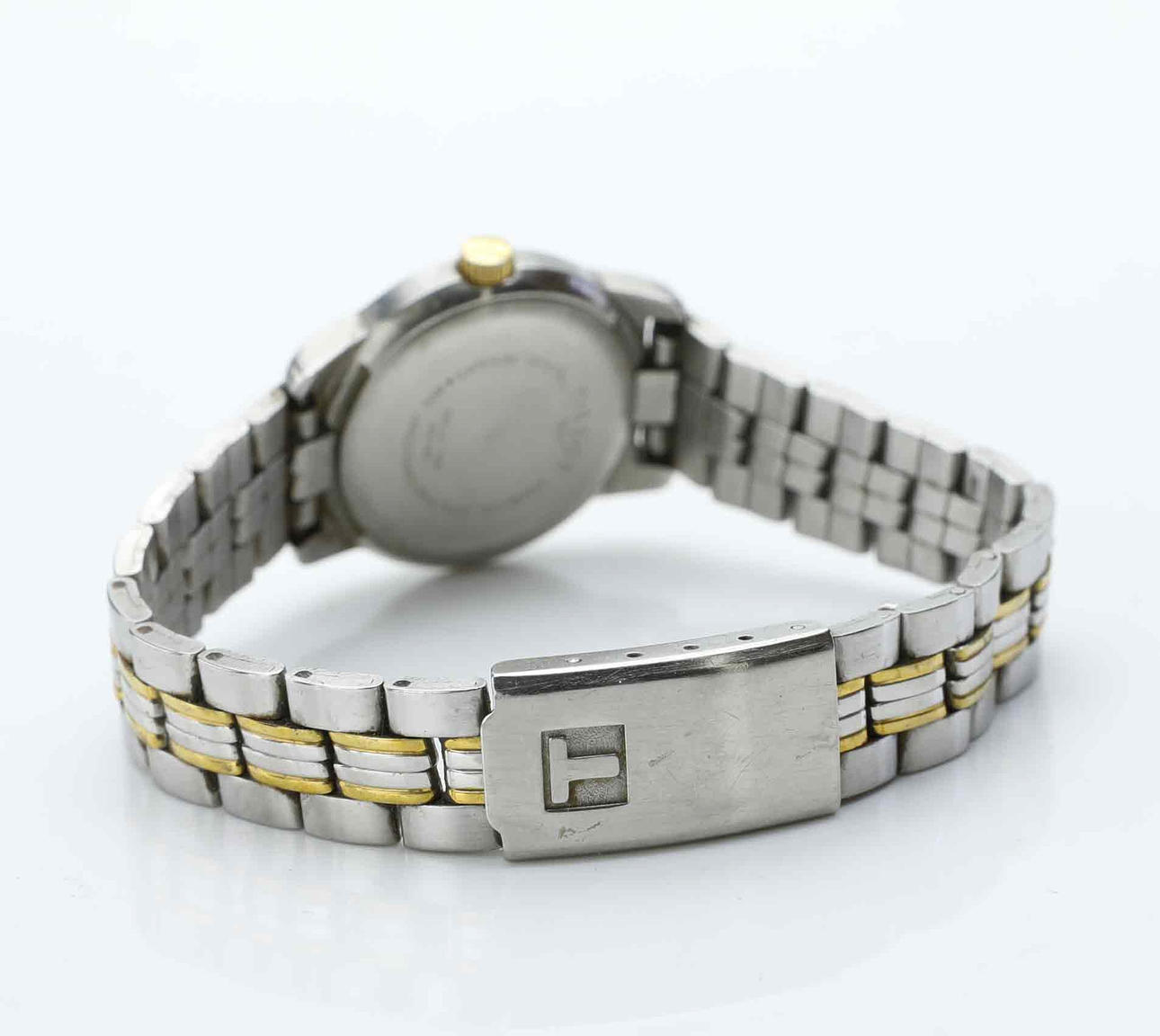 Case and link in partially gilded steel. White dial with gold-colored indexes.