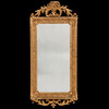 Gilded frame with pastellage decor. Console table with white painted wooden top. Mirror height approx. 132 cm, width approx. 60 cm. Table width approx. 69 cm, depth 32 cm, height approx. 79 cm.