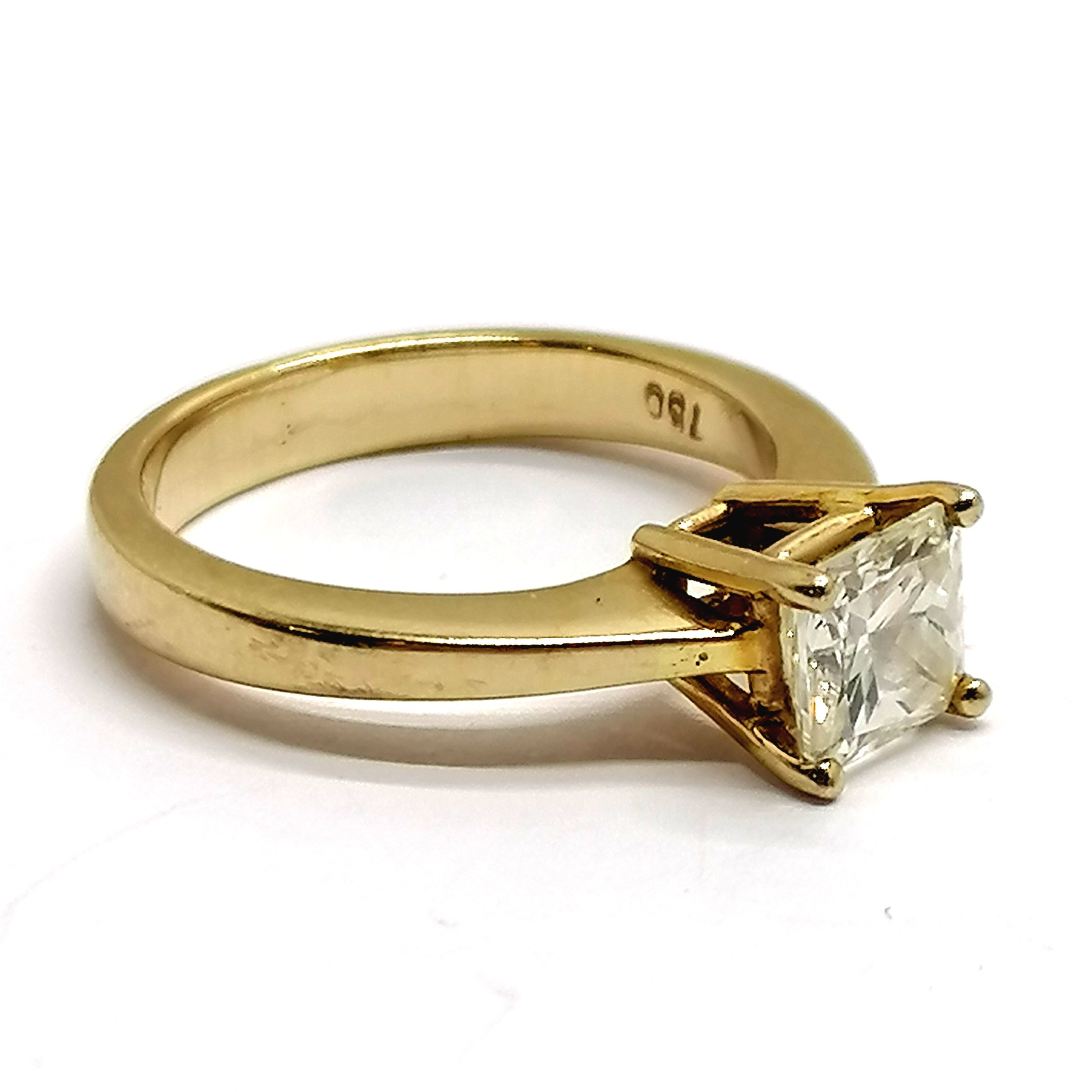 4944682. 18ct GOLD PRINCESS CUT DIAMOND SOLITAIRE RING.