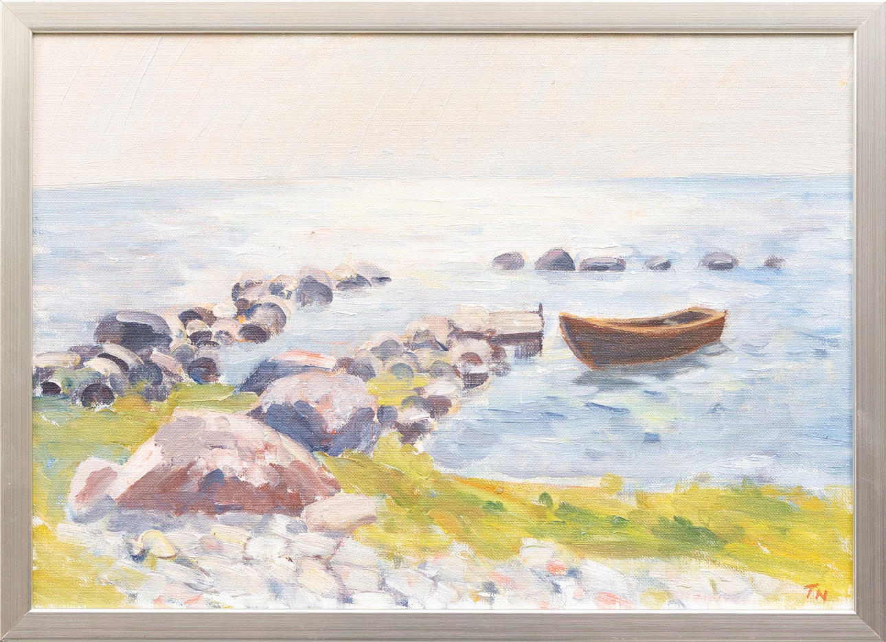 TAGE NILSSON. “Morgonlys Stenbo, Öland 1987", oil on panel, signed TN.