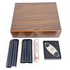 Cigar box in veneered wood with cigar knobs, hygrometer and an artificial leather case.