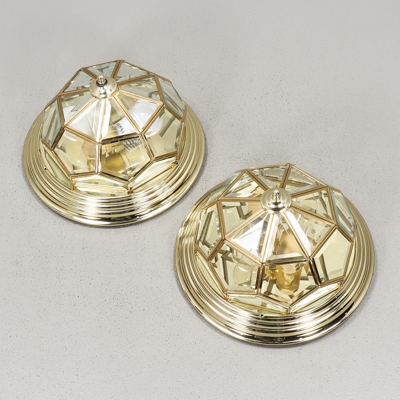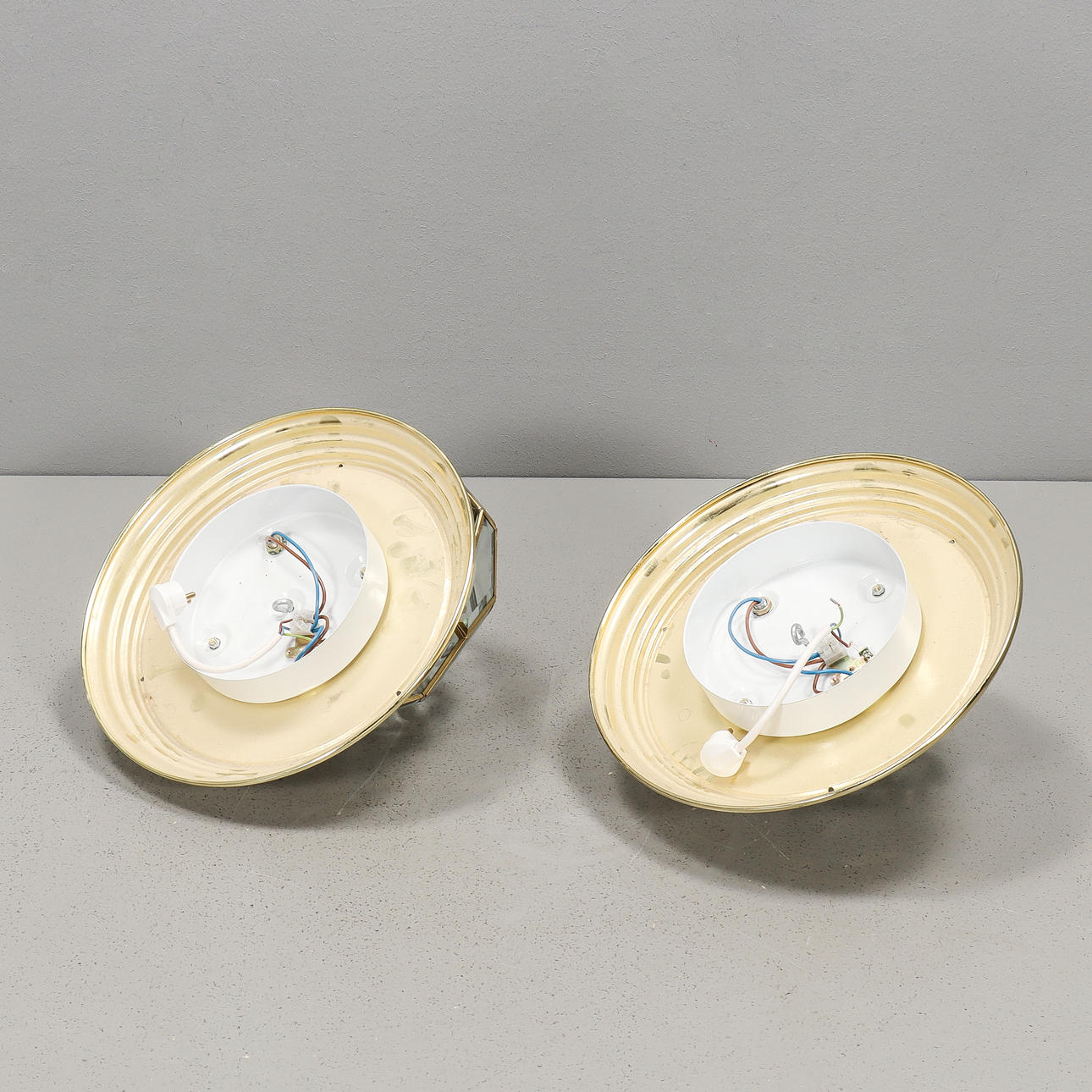CEILING PLAFONDER 2 pieces, brass and glass.