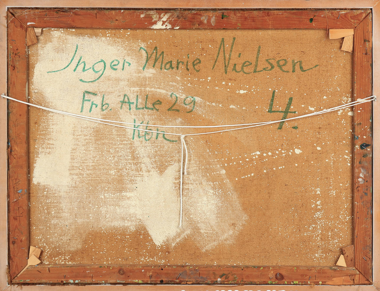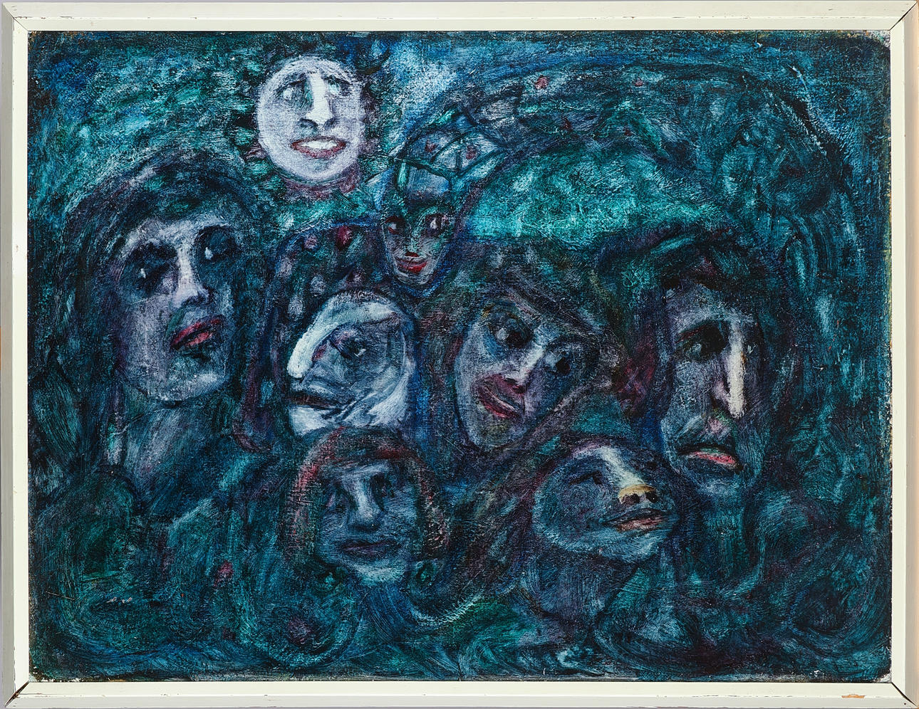 Inger Marie Nielsen, composition with faces, oil on canvas, signed on the back and dated 1957-58. H. 62 x 85 cm, framed 69 x 90 cm.