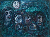 4945659. INGER MARIE NIELSEN. Composition with faces, oil on canvas, signed on back and dated 1957-58.