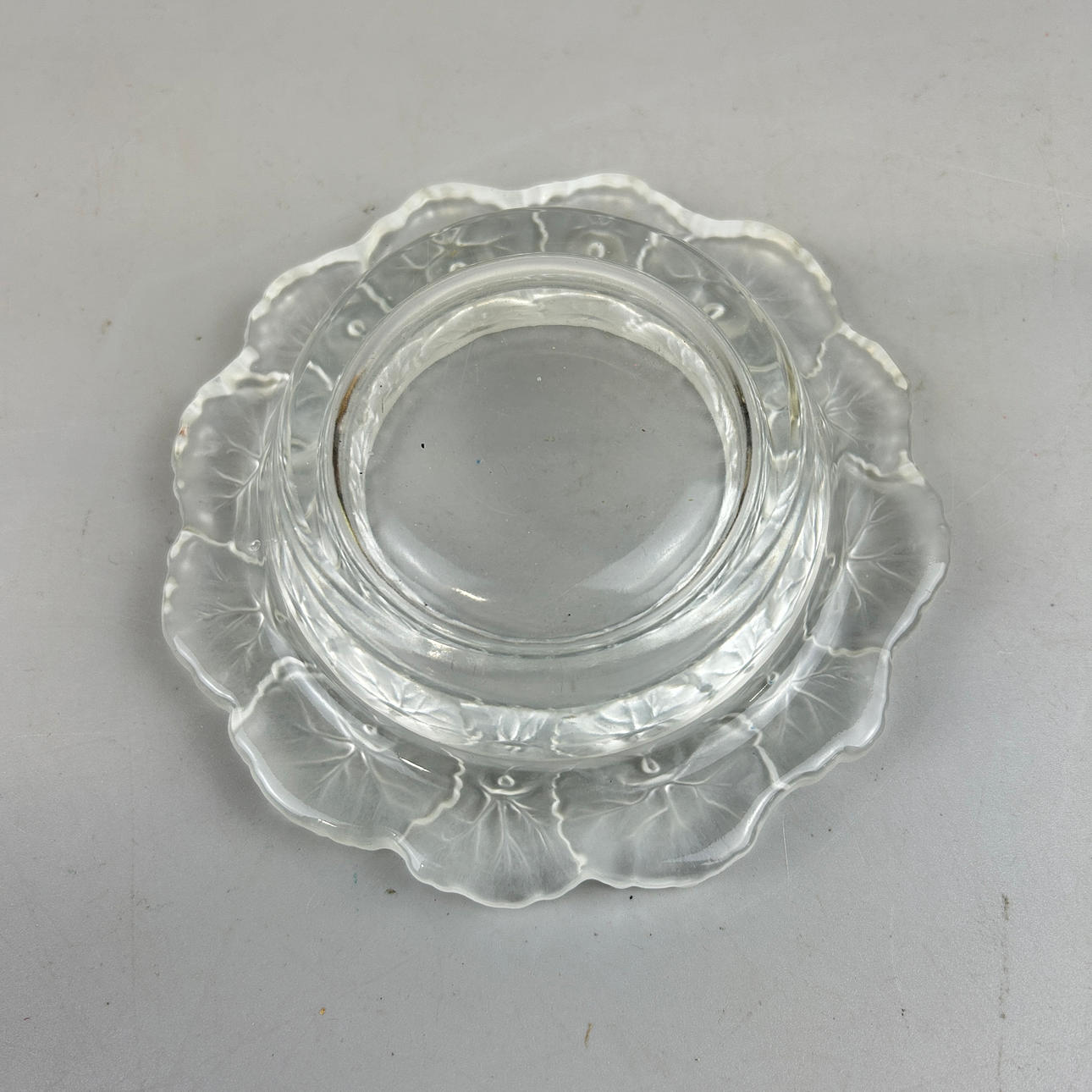 A Lalique frosted crystal bowl, unsigned, dia. 17cm, height 4.5cm.